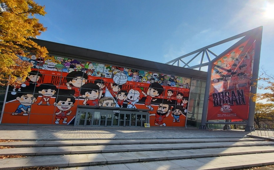 관중들의 열기만이 아니었다. 강서실내체육관 안팎 풍경도 이미 이곳이 OK저축은행 배구단의 새 홈구장이라는 걸 고스란히 보여줬다. 전면 리모델링은 물론이고 경기장 외벽에는 선수들의 캐리커처와 엠블럼, 유니폼 등 프로배구 최대 규모의 래핑으로 장식됐다. 부산시와 강서구의 적극적인 지원이 있었다는 게 구단 측 설명이다.