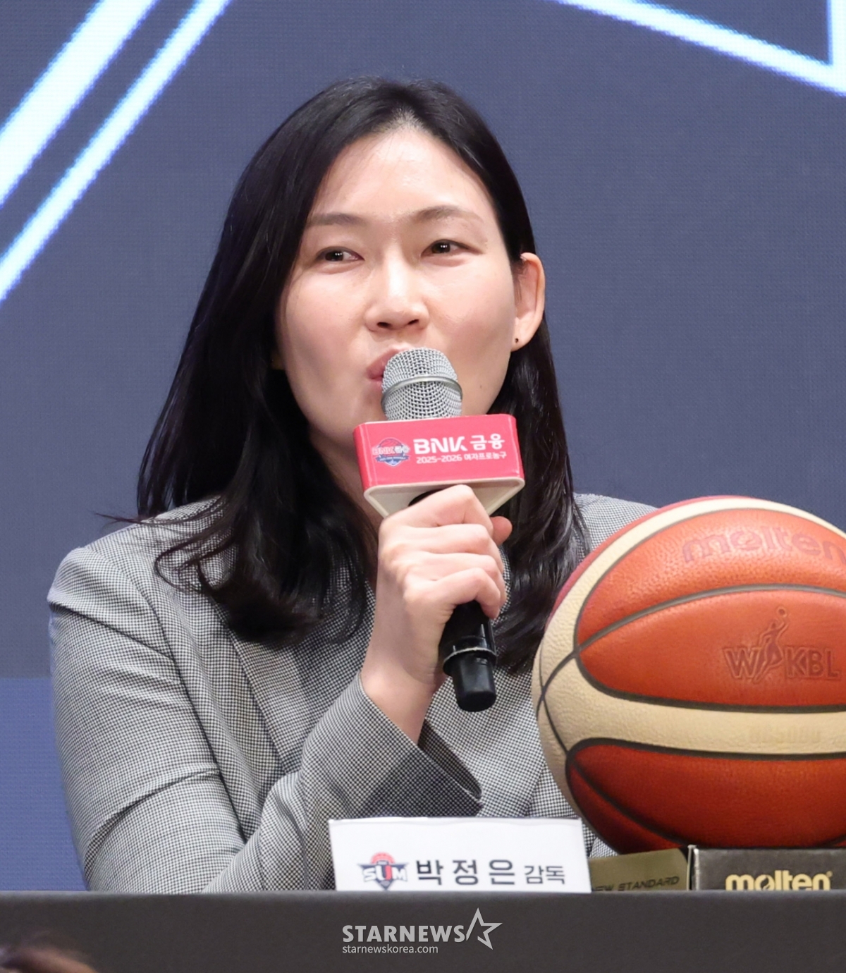 BNK 썸 박정은 감독이 출사표를 밝히고 있다.