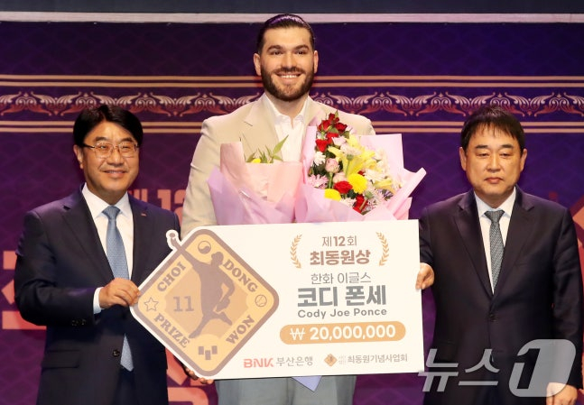 폰세는 11일 부산은행 본점 2층 오션홀에서 열린 제12회 BNK부산은행 최동원상 시상식에 직접 참석해 최동원의 투구폼을 형상화한 트로피와 상금 2천만원을 직접 받았다.