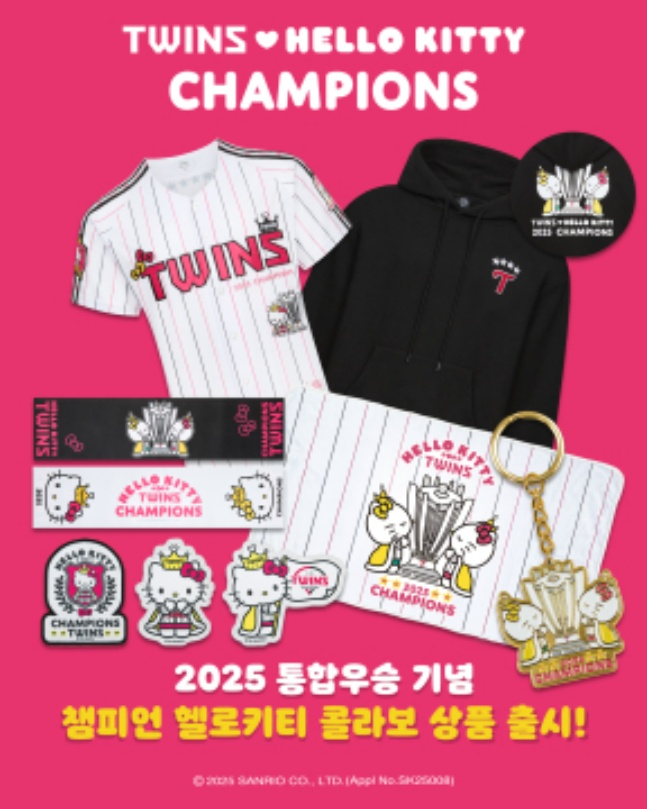 이번 기념 상품은 12일 오후 3시부터 트윈스 어패럴샵을 통해 통합 우승 바시티 점퍼, 스타디움 래더 점퍼, 반집업 바람막이, 후드티(3종), 티셔츠(2종), 유니폼(2종) 등을 출시한다. 챔피언 헬로키티 유니폼, 후드티 등 콜라보 상품은 콜랩샵을 통해 만날 수 있다.