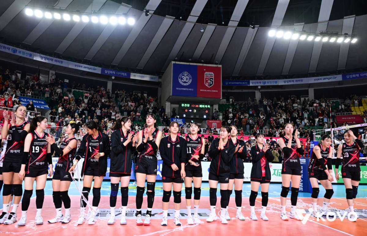 한국배구연맹(KOVO)은 14일 진에어 2025~2026 프로배구 V-리그 1라운드 결산을 통해 여자부 1라운드 평균 시청률이 지난 시즌 1.12%에서 0.15%p 증가한 1.27%라고 밝혔다. 케이블 TV 생중계 경기의 방송사 합산 기준 시청률이다.