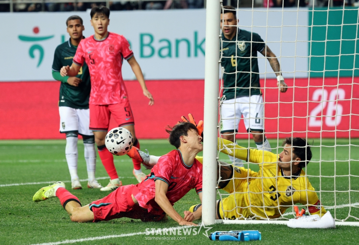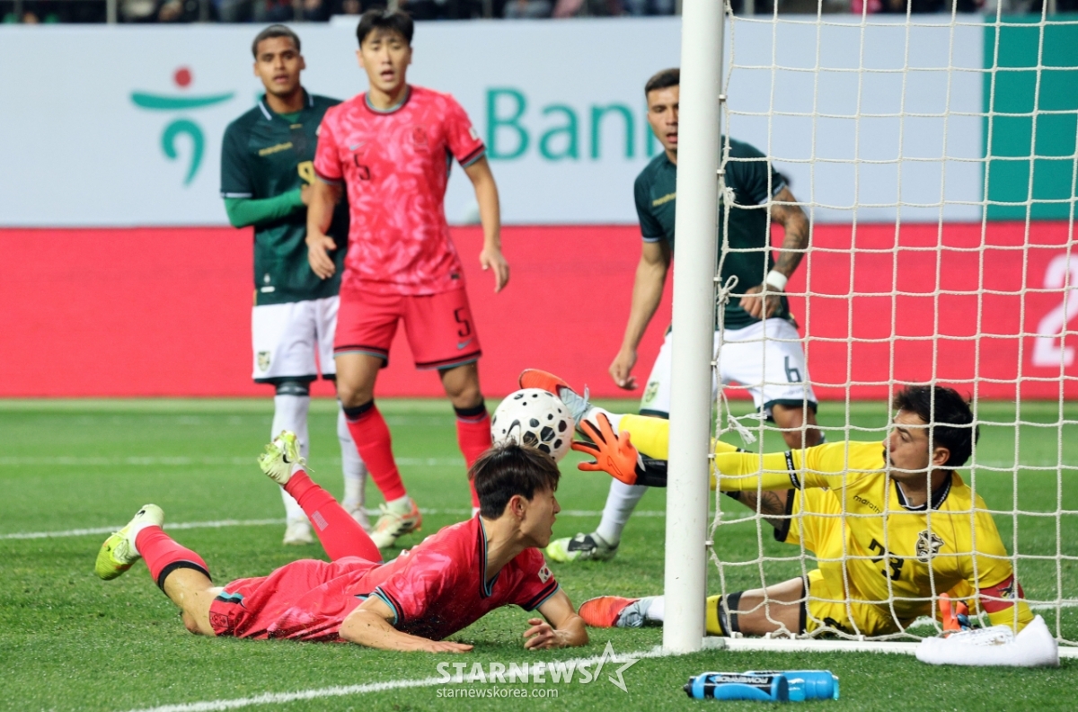 스포츠축구[한번에쓱]'골키퍼에 막힌' 이재성의 다이빙헤딩슛발행 : 2025.11.14 ・ 20:44수정 : 2025.11.14 ・ 20:53대전=강영조 선임기자축구대표팀 이재성이 4일 대전월드컵경기장에서 열린 대한민국축구대표팀과 볼리비아(FIFA 랭킹 76위)와의 친선경기에서 다이빙헤딩슛을 시도했으나 비스카라 골키퍼에 막히고 있다. 2025.11.14.<저작권자 © 스타뉴스, 무단전재 및 재배포 금지>브리핑축구대표팀 이재성이 대전월드컵경기장에서 볼리비아전에 출전, 헤딩슛을 시도했지만 골키퍼 비스카라가 막았다.추천 기사강영조 선임기자기자홈좋아요스포츠-축구의 인기 급상승 뉴스스포츠-축구의 최신 뉴스