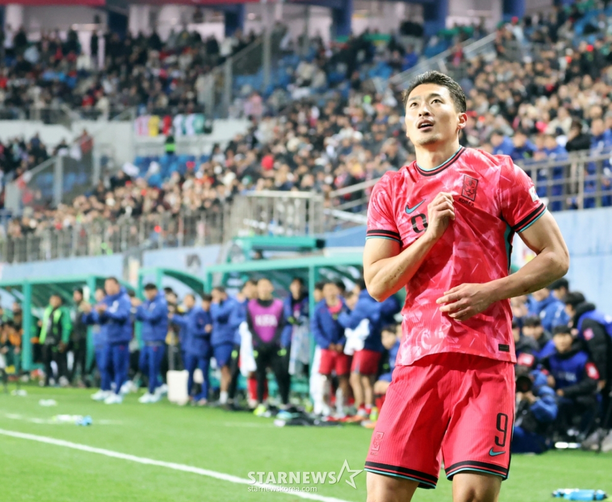 동료들의 축하가 이어졌다. 손흥민 등 벤치에 앉아있던 선수들도 환하게 웃으며 조규성의 골을 축하했다. 조규성도 포효하며 기쁨을 감추지 못했다. 한때 축구대표팀 주전 스트라이커의 귀환을 알린 한 방이기도 했다.