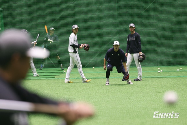 이들은 지바 롯데 선수들과 함께 섞여 타격과 수비 훈련을 소화했다. 전민재는 배팅을 기다리면서 1999년생 동갑내기 내야수 이케다 라이토와 대화를 나눴다. 한태양 역시 그라운드 한 켠에서 일본 선수들과 수비 핸들링과 토스 훈련을 진행했다.