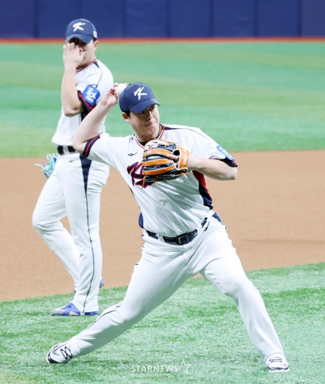 이날 한국은 신민재(2루수)-안현민(우익수)-송성문(지명타자)-노시환(3루수)-문보경(1루수)-박동원(포수)-문현빈(좌익수)-김주원(유격수)-박해민(중견수)으로 타선을 구성했다. 선발 투수는 곽빈.