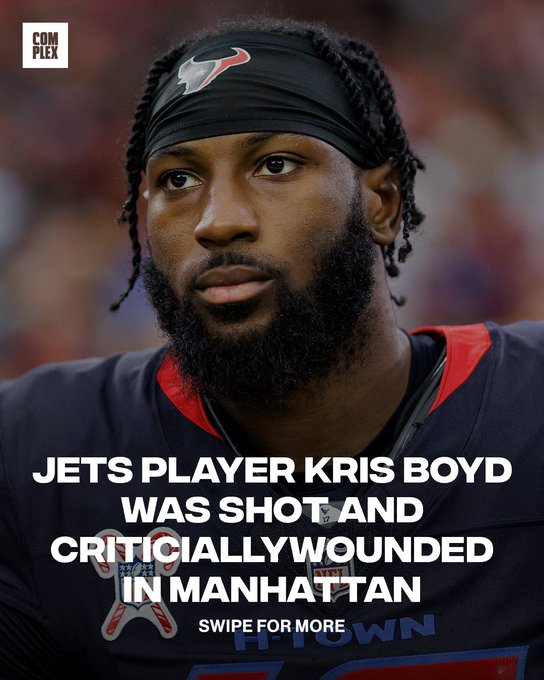미국프로풋볼(NFL) 뉴욕 제츠 코너백 크리스 보이드(29)가 맨해튼 한복판에서 총격을 당해 중태에 빠지는 사건이 발생했다. 현지 경찰과 구단 주요 매체들이 잇달아 소식을 전하고 있다.