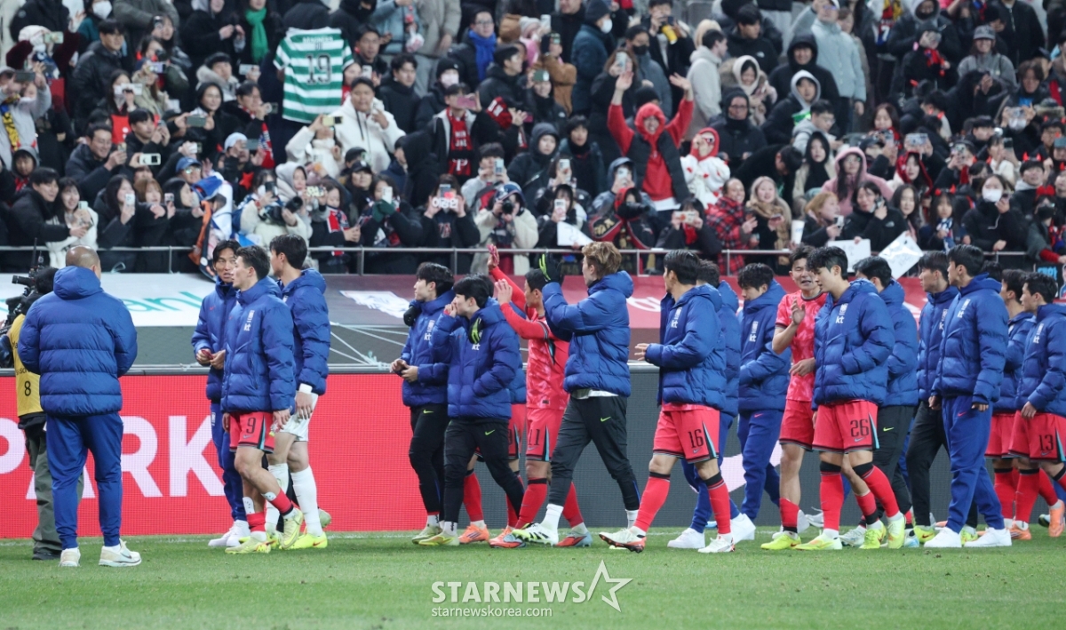 스포츠축구[포토] 태극전사 '2026에 만나요'발행 : 2025.11.18 ・ 22:02상암=김진경 대기자축구 국가대표 A매치 친선경기 대한민국과 가나의 경기가 18일 서울월드컵경기장애서 열렸다.한국 선수들이 가나에 1-0 승리를 한 후 팬들에 인사하고 있다.<저작권자 © 스타뉴스, 무단전재 및 재배포 금지>브리핑대한민국 축구 대표팀이 서울에서 열린 가나와의 친선경기에서 1-0으로 승리하며 팬들에게 인사했습니다.추천 기사김진경 대기자기자홈좋아요스포츠-축구의 인기 급상승 뉴스스포츠-축구의 최신 뉴스