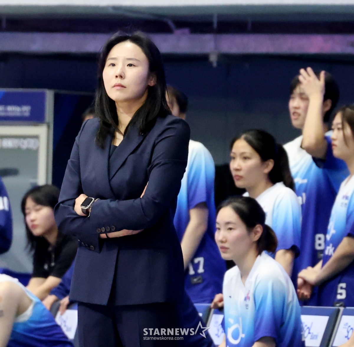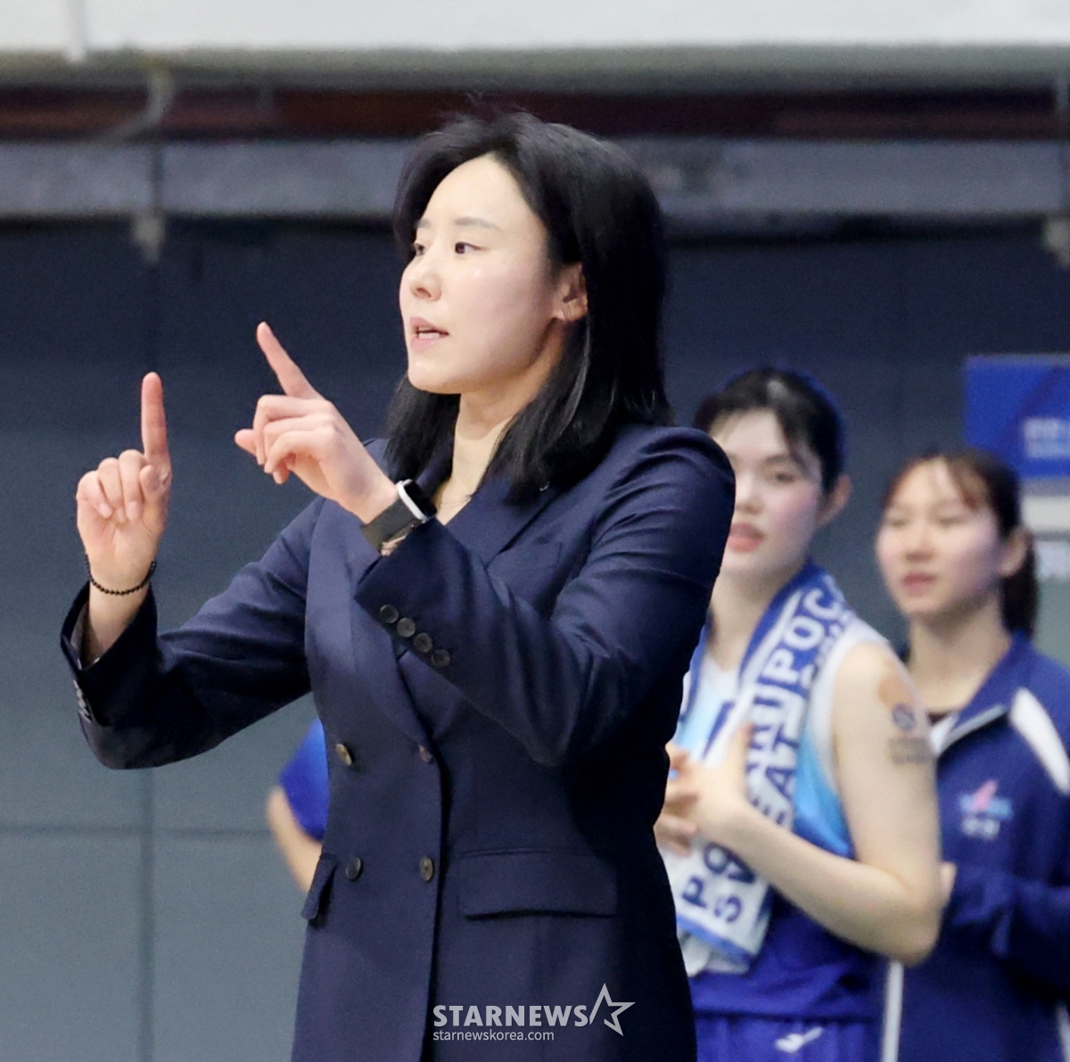 신한은행 최윤아 감독이 21일 인천 도원체육관에서 열린 2025-2026 WKBL 신한은행과 하나은행의 경기에서 선수들을 독려하고 있다. 2025.11.21.