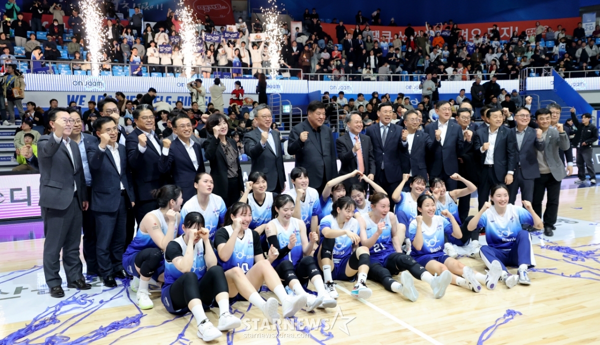 스포츠일반[한번에쓱]최윤아 감독 첫승 축하세리머니, 서정진 후원회장도 동참발행 : 2025.11.21 ・ 21:38인천=강영조 선임기자신한은행 최윤아 감독이 21일 인천 도원체육관에서 열린 2025-2026 WKBL 신한은행과 하나은행의 경기에서 승리하며 감독데뷔 첫승을 달성했다. 후원회장인 서정진 셀트리온 회장과 신한그룹 임원들이 선수들과 승리 기념촬영을 하고 있다. 2025.11.21.<저작권자 © 스타뉴스, 무단전재 및 재배포 금지>최윤아서정진머니신한은행감독회장추천 기사강영조 선임기자기자홈좋아요 스포츠-일반의 인기 급상승 뉴스스포츠-일반의 최신 뉴스