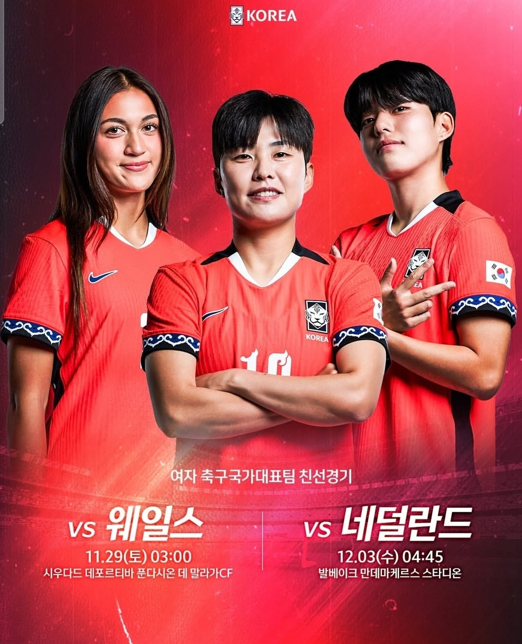 대한축구협회(KFA)는 23일 보도자료를 통해 "여자대표팀의 11월 첫 번째 경기인 웨일스전은 오는 29일 오전 3시(한국시간) 스페인 말라가에서 열린다"고 밝혔다.