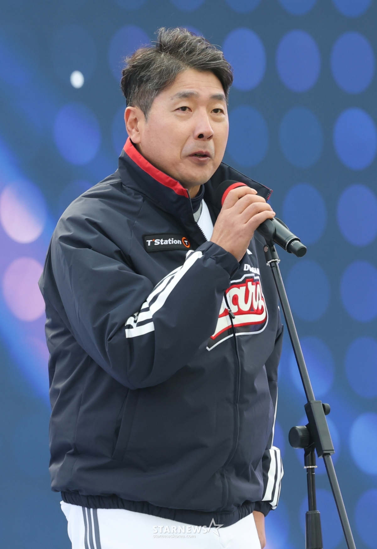 홍원기 코치가 팬들에 인사말을 하고 있다.