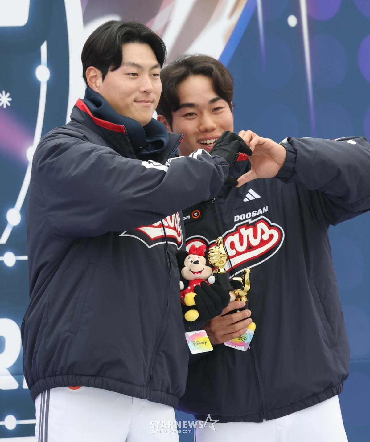 스포츠야구[포토] 오명진-박지훈 '베스트 커플상'발행 : 2025.11.23 ・ 14:51잠실=김진경 대기자두산 베어스의 팬 페스티벌 '2025 곰들의 모임' 행사가 23일 서울 잠실야구장에서 열렸다.오명진과 박지훈이 베스트 커플상 수상 후 포즈를 취하고 있다.곰들의 모임은 한 시즌 동안 변함없는 응원을 보내준 두산 최강 10번타자 팬들에게 감사의 마음을 전하기 위해 마련된 팬 페스티벌이다.<저작권자 © 스타뉴스, 무단전재 및 재배포 금지>프로야구kBO두산_베어스곰들의모임허슬두김원형_감독추천 기사김진경 대기자기자홈좋아요 스포츠-야구의 인기 급상승 뉴스스포츠-야구의 최신 뉴스