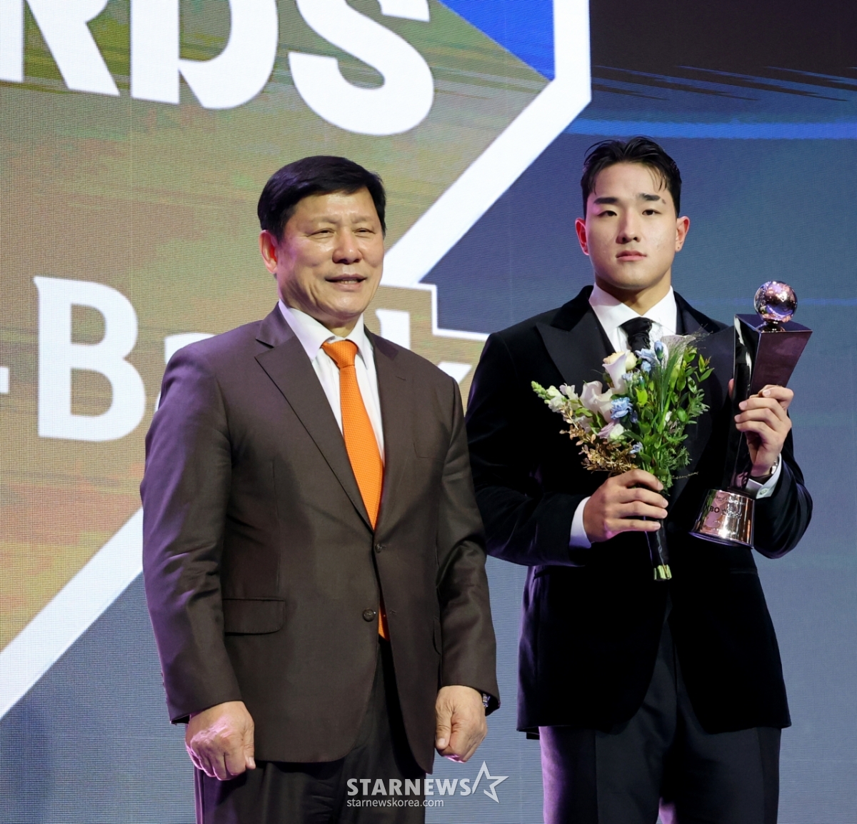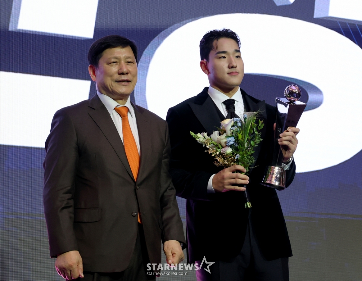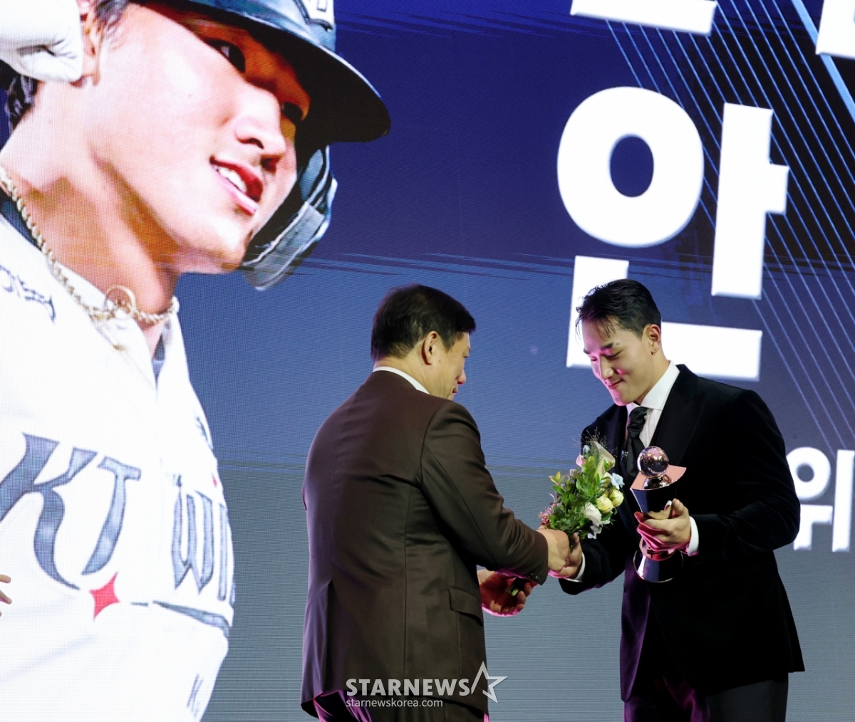 스포츠야구[포토]'2025 KBO리그를 지배한 신인' 안현민발행 : 2025.11.24 ・ 15:30조회수 :잠실=강영조 선임기자KT 안현민이 24일 잠실 롯데호텔 월드에서 열린 2025 신한 쏠뱅크 KBO어워즈에서 신인상을 수상한 후 허구연 총재와 기념촬영을 하고 있다. 2025.11.24.. 2025.11.24.<저작권자 © 스타뉴스, 무단전재 및 재배포 금지>브리핑추천 기사강영조 선임기자기자홈좋아요스포츠-야구의 인기 급상승 뉴스스포츠-야구의 최신 뉴스AD