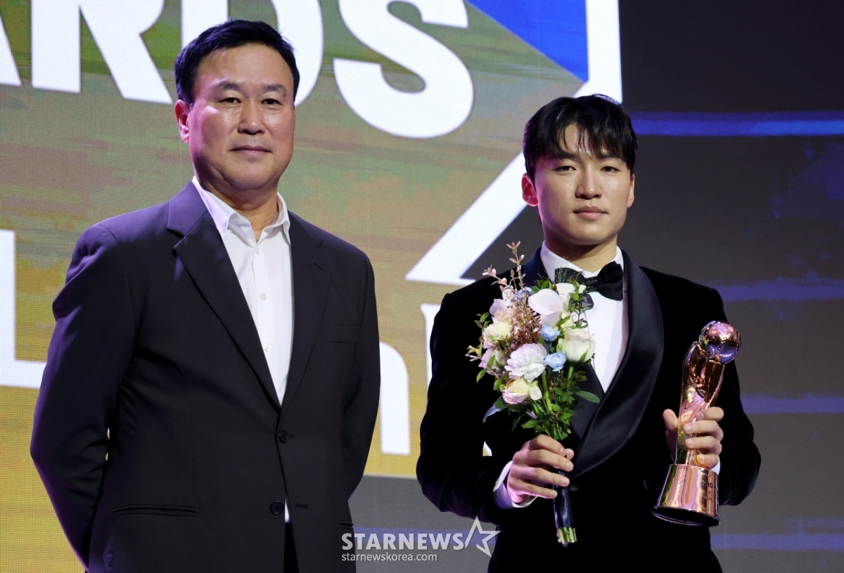 스포츠야구[포토]외야수비상 수상하는 박해민, 아들 이든 특별출련발행 : 2025.11.24 ・ 16:33잠실=강영조 선임기자수비상을 수상한 LG 박해민이 4일 잠실 롯데호텔 월드에서 열린 2025 신한 쏠뱅크 KBO어워즈에서 장종훈 총재특보로부터 트로피를 수상하고 있다. 2025.11.24.<저작권자 © 스타뉴스, 무단전재 및 재배포 금지>박해민비상수상잠실롯데호텔장종훈추천 기사강영조 선임기자기자홈좋아요 스포츠-야구의 인기 급상승 뉴스스포츠-야구의 최신 뉴스