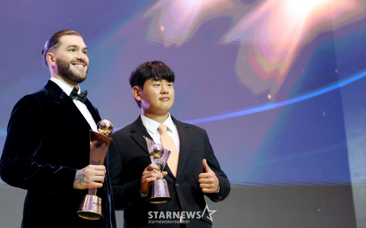 스포츠야구[포토] '우리는 독수리 피가 흐리지!' 폰세와 장규현발행 : 2025.11.24 ・ 19:40수정 : 2025.11.24 ・ 19:41잠실=강영조 선임기자MVP 한화 폰세가 4일 잠실 롯데호텔 월드에서 열린 2025 신한 쏠뱅크 KBO어워즈를 마친 후 퓨처스 타자부문 수장자인 장규현과 기념사진을 찍고 있다. 2025.11.24.<저작권자 © 스타뉴스, 무단전재 및 재배포 금지>폰세장규현잠실롯데호텔퓨처스포토추천 기사강영조 선임기자기자홈좋아요 스포츠-야구의 인기 급상승 뉴스스포츠-야구의 최신 뉴스