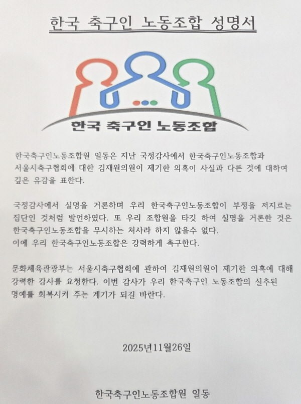 축구인노조 관계자 A씨는 "문체부가 최대한 빨리 서울시축구협회를 감사할 것을 요구한다. 축구인노조는 이번 기회에 노조원들의 억울함을 해소하고 싶다"며 "서울시축구협회의 어지러운 상황을 세상에 알리는 기회라고 생각한다. 문체부에서 감사가 나오면 적극적으로 협조하겠다"고 밝혔다.