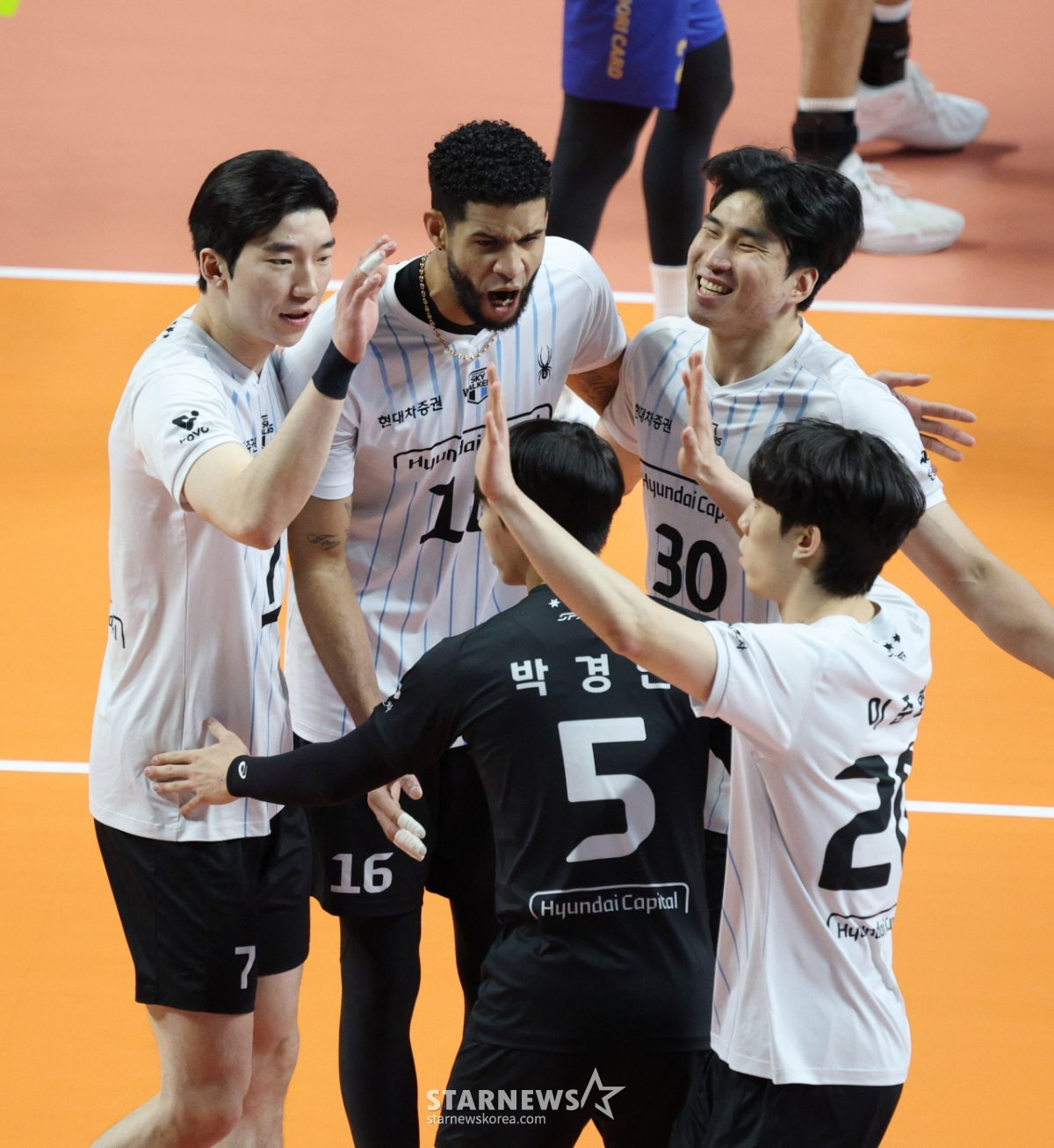 스포츠일반[포토] 레오-허수봉 '1세트 이겼다'발행 : 2025.11.26 ・ 19:48장충=김진경 대기자2025-2026 V-리그 남자부 우리카드 대 현대캐피탈 경기가 26일 서울 장충체육관에서 열렸다.현대캐피탈 레오가 결정적인 공격에 성공한 후 동료들과 기뻐하고 있다.<저작권자 © 스타뉴스, 무단전재 및 재배포 금지>프로배구V리그우리카드현대캐피탈아라우조알리추천 기사김진경 대기자기자홈좋아요 스포츠-일반의 인기 급상승 뉴스스포츠-일반의 최신 뉴스
