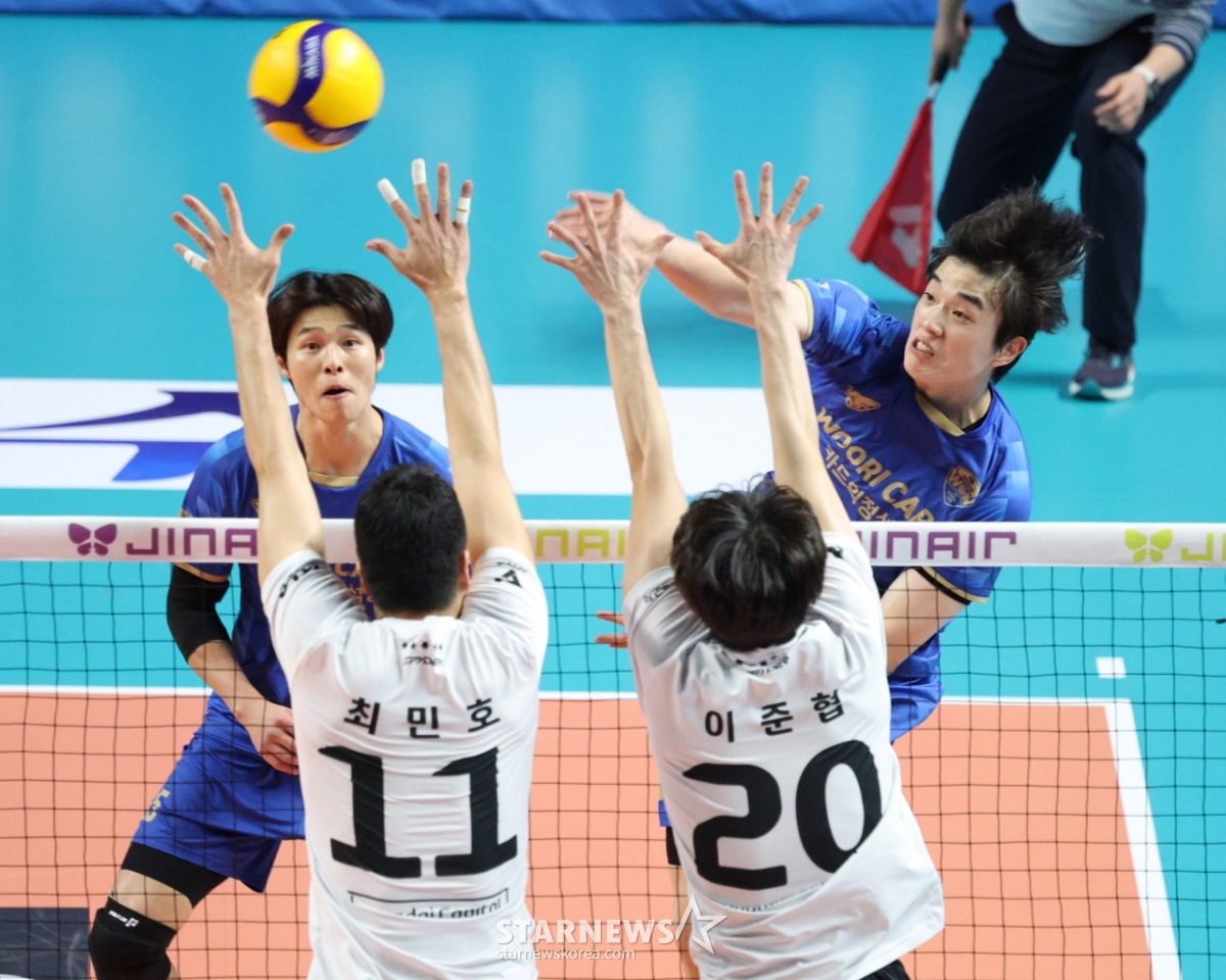 스포츠일반[포토] 김지한 '대각선 어택'발행 : 2025.11.26 ・ 19:57장충=김진경 대기자2025-2026 V-리그 남자부 우리카드 대 현대캐피탈 경기가 26일 서울 장충체육관에서 열렸다.우리카드 김지한이 현대캐피탈 최민호, 이준협의 더블 블로킹 위로 강스파이크를 날리고 있다.<저작권자 © 스타뉴스, 무단전재 및 재배포 금지>프로배구V리그우리카드현대캐피탈아라우조알리추천 기사김진경 대기자기자홈좋아요 스포츠-일반의 인기 급상승 뉴스스포츠-일반의 최신 뉴스