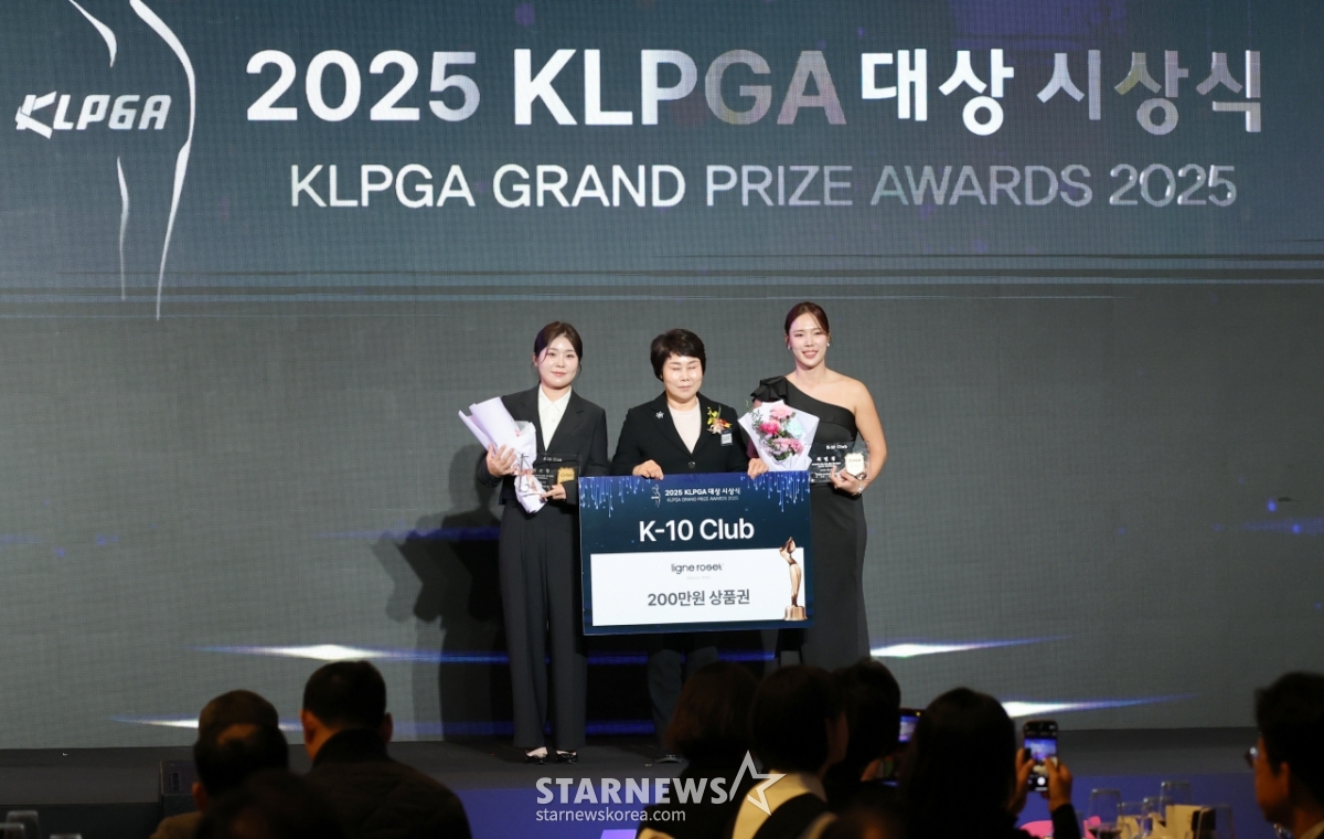 스포츠일반[포토] 2025KLPGA대상 K10클럽 수상자 최민경, 이소영발행 : 2025.11.28 ・ 17:37삼성동=강영조 선임기자K10클럽 수상자인 최민경, 이소영이 28일 삼성동 인터콘티넨탈호텔 파르나스에서 열린 2025KLPGA대상 시상식에서 상을 수상한 후 포즈를 취하고 있다. 2025.11.28.K10클럽 수상자인 최민경, 이소영이 28일 삼성동 인터콘티넨탈호텔 파르나스에서 열린 2025KLPGA대상 시상식에서 상을 수상한 후 포즈를 취하고 있다. 2025.11.28.<저작권자 © 스타뉴스, 무단전재 및 재배포 금지>브리핑2025KLPGA대상 시상식에서 K10클럽 수상자 최민경과 이소영이 수상했습니다.추천 기사강영조 선임기자기자홈좋아요스포츠-일반의 인기 급상승 뉴스스포츠-일반의 최신 뉴스