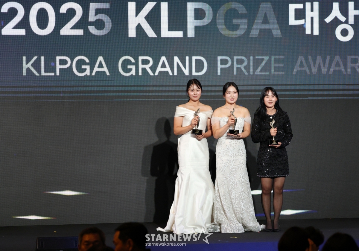 스포츠일반[포토] 2025KLPGA대상 대상 유현조, 신인상 서교림, 인기상 황유민발행 : 2025.11.28 ・ 18:42삼성동=강영조 선임기자대상 유현조, 신인상 서교림, 인기상 황유민이 28일 삼성동 인터콘티넨탈호텔 파르나스에서 열린 2025KLPGA대상 시상식에서 포토타임을 갖고 있다. 2025.11.28.대상 유현조, 신인상 서교림, 인기상 황유민이 28일 삼성동 인터콘티넨탈호텔 파르나스에서 열린 2025KLPGA대상 시상식에서 포토타임을 갖고 있다. 2025.11.28.<저작권자 © 스타뉴스, 무단전재 및 재배포 금지>브리핑2025KLPGA대상 시상식이 28일 삼성동 인터콘티넨탈호텔에서 열렸다. 대상에는 유현조, 신인상은 서교림, 인기상은 황유민이 수상했다.추천 기사강영조 선임기자기자홈좋아요스포츠-일반의 인기 급상승 뉴스스포츠-일반의 최신 뉴스