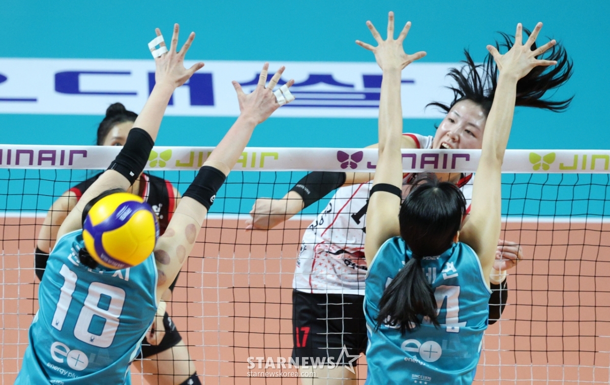 스포츠일반[포토] 정호영 '권민지 삭제'발행 : 2025.11.28 ・ 20:13장충=김진경 대기자2025-2026 V-리그 여자부 GS칼텍스 대 정관장 경기가 28일 서울 장충체육관에서 열렸다.정관장 정호영이 GS칼텍스 권민지, 오세연의 블로킹 위로 강스파이크를 날리고 있다.<저작권자 © 스타뉴스, 무단전재 및 재배포 금지>프로배구V리그스파이크블로킹정관장GS칼텍스추천 기사김진경 대기자기자홈좋아요 스포츠-일반의 인기 급상승 뉴스스포츠-일반의 최신 뉴스