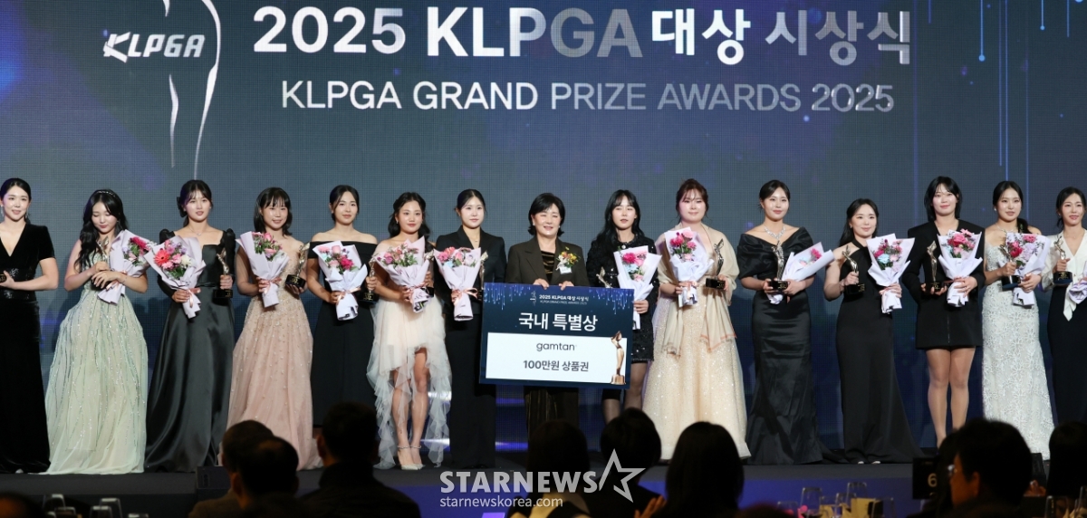 스포츠일반[포토] 2025년 KLPGA 국내특별상 수상한 선수들발행 : 2025.11.28 ・ 21:11삼성동=강영조 선임기자박보겸, 박현경, 정윤지, 이가영, 노승희, 고지우, 배소현, 유현조, 이다연, 성유진, 황유민, 이예원, 방신실, 홍정민이 28일 삼성동 인터콘티넨탈호텔 파르나스에서 열린 2025KLPGA대상 시상식에서 국내특별상을 수상하고 있다. 2025.11.28.<저작권자 © 스타뉴스, 무단전재 및 재배포 금지>KLPGA국내특별상박현경정윤지이가영추천 기사강영조 선임기자기자홈좋아요 스포츠-일반의 인기 급상승 뉴스스포츠-일반의 최신 뉴스