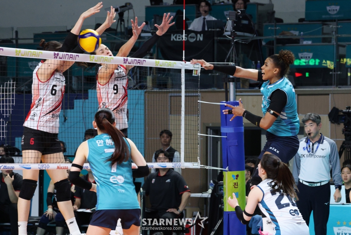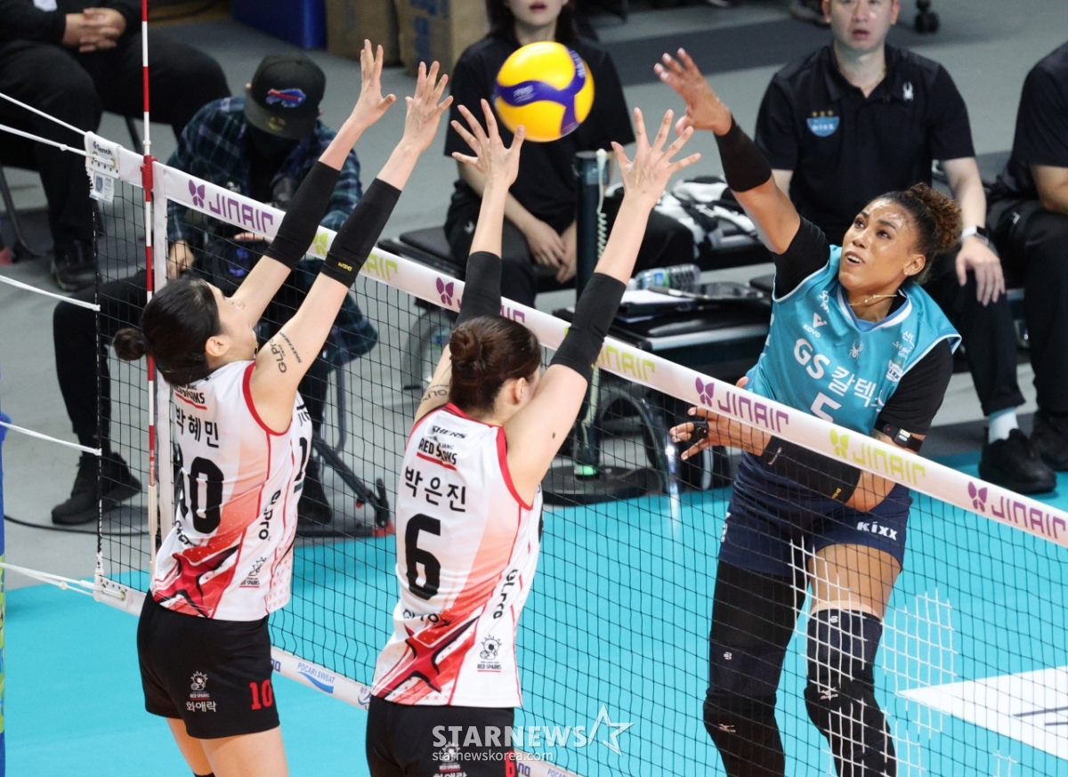 GS칼텍스 에이스 실바가 펄펄 날며 홍삼의 힘 싹을 잘랐다.