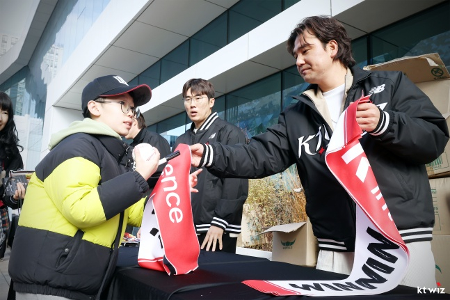 새로운 마법사 김현수도 한참 전에 잡힌 일정도 미루고 KT 팬들을 직접 맞이했다. 오전에 진행된 유소년 재능 기부 행사에는 꼭 참석하고 싶어 했다는 후문. 김현수는 "행사가 있는 걸 미리 알았으면 좋았을 텐데 늦게 알았다. 미뤄준 쪽에 감사하다. FA로 왔기 때문에 팬분들에게 인사를 해야 한다고 생각했다. 계약하고 이런 행사가 있어 다행이다"라고 미소 지었다.