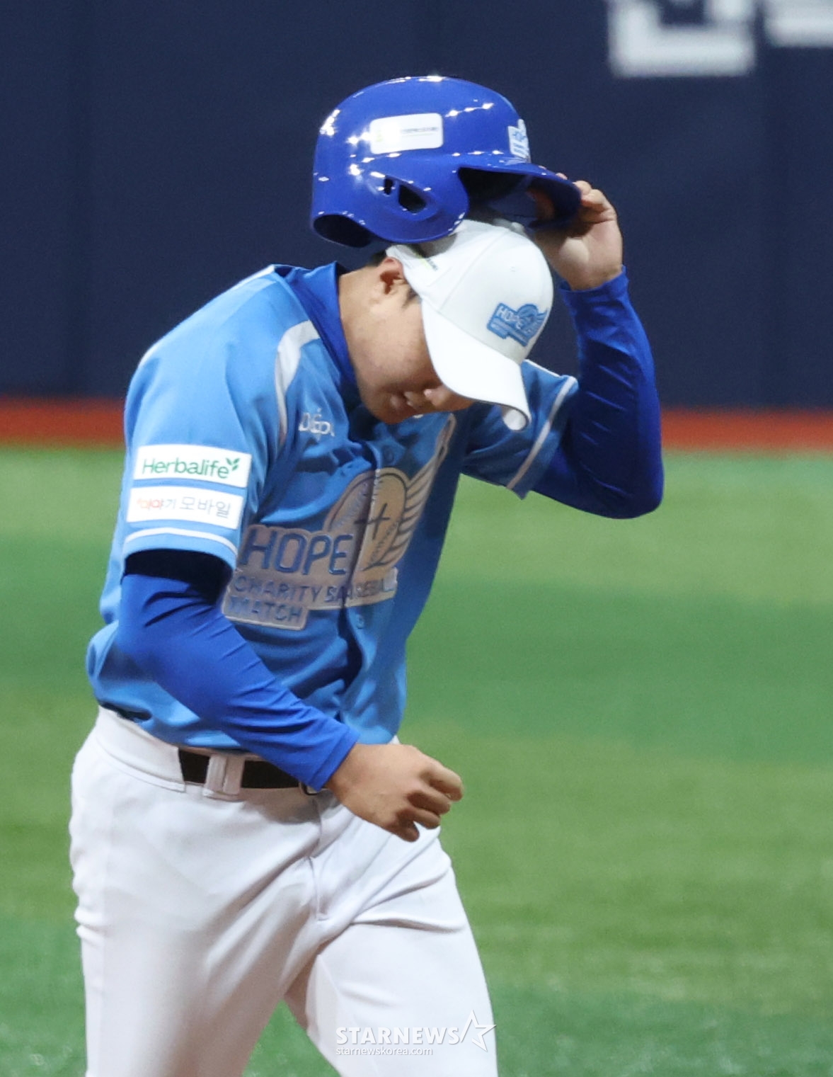 마포팀 배찬승이 범타로 물러난 후 고개를 떨구고 있다.