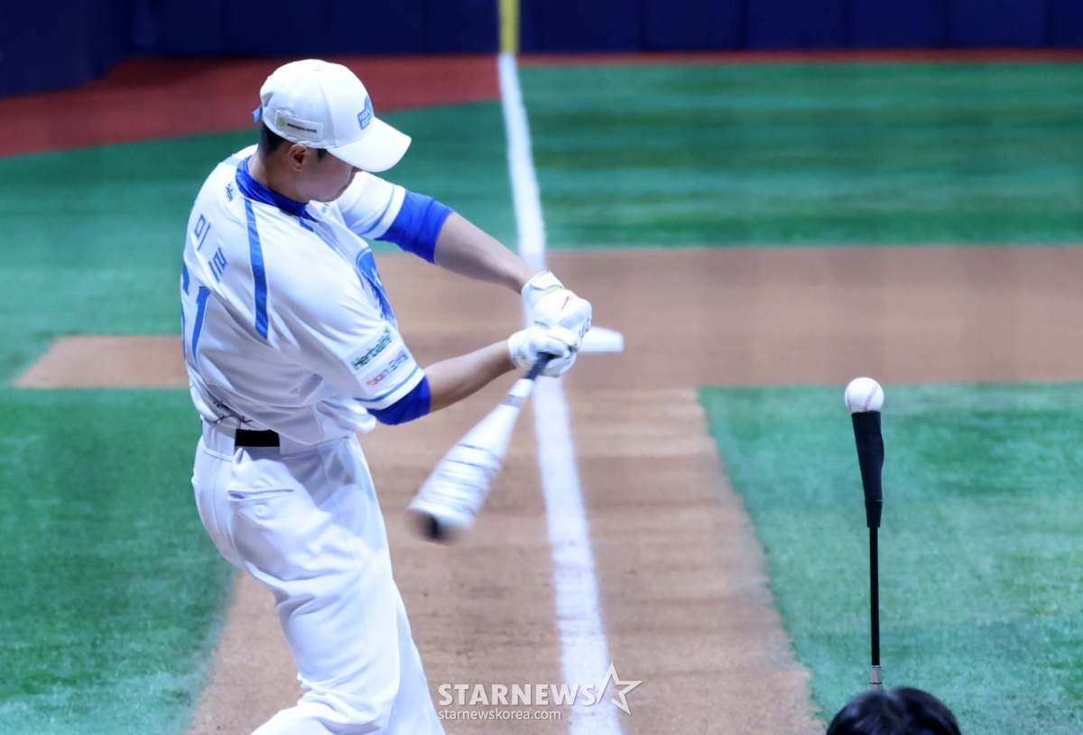 양신팀 전미르가 홈런 레이스에서 힘찬 타격을 하고 있다.