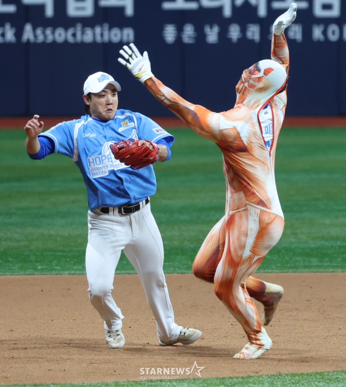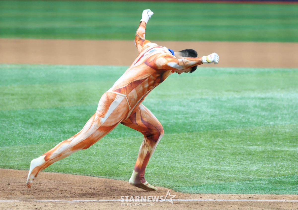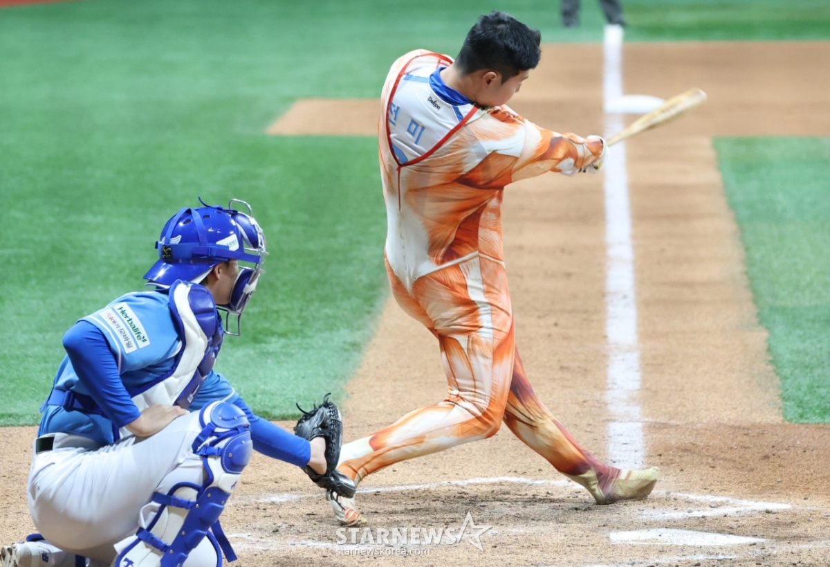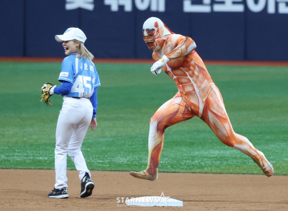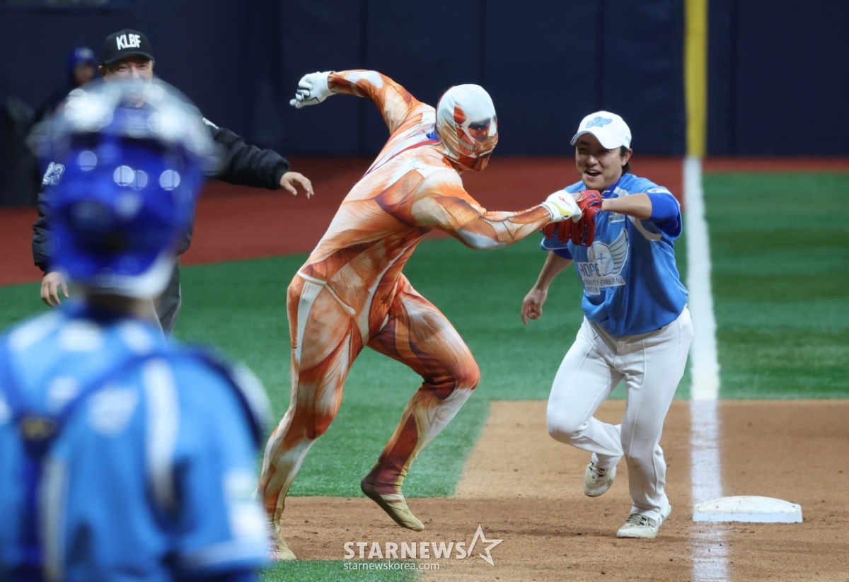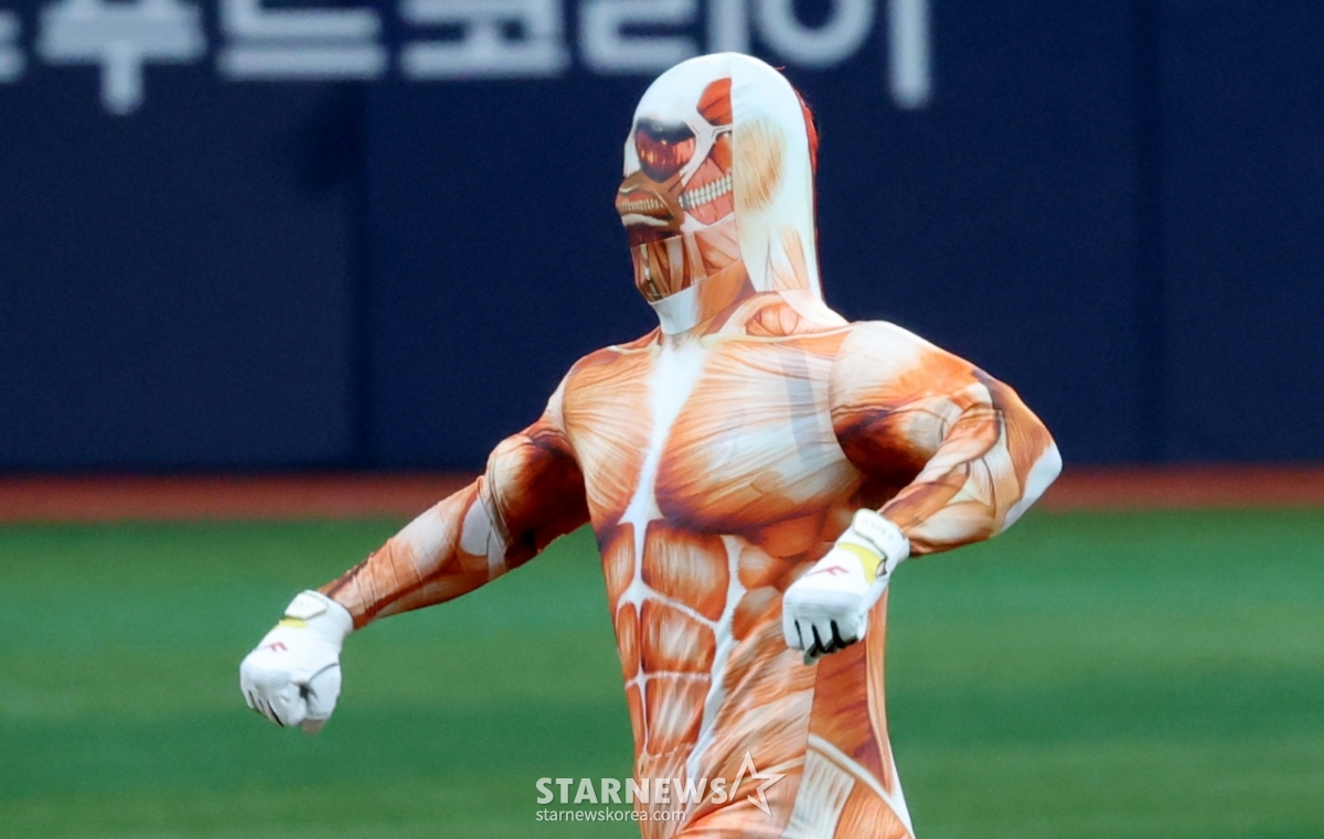 전미르(국군체육부대)가 진격의 거인 패션으로 끝내기 그라운드 홈런을 노렸으나 이쉽게 불발됐다.
