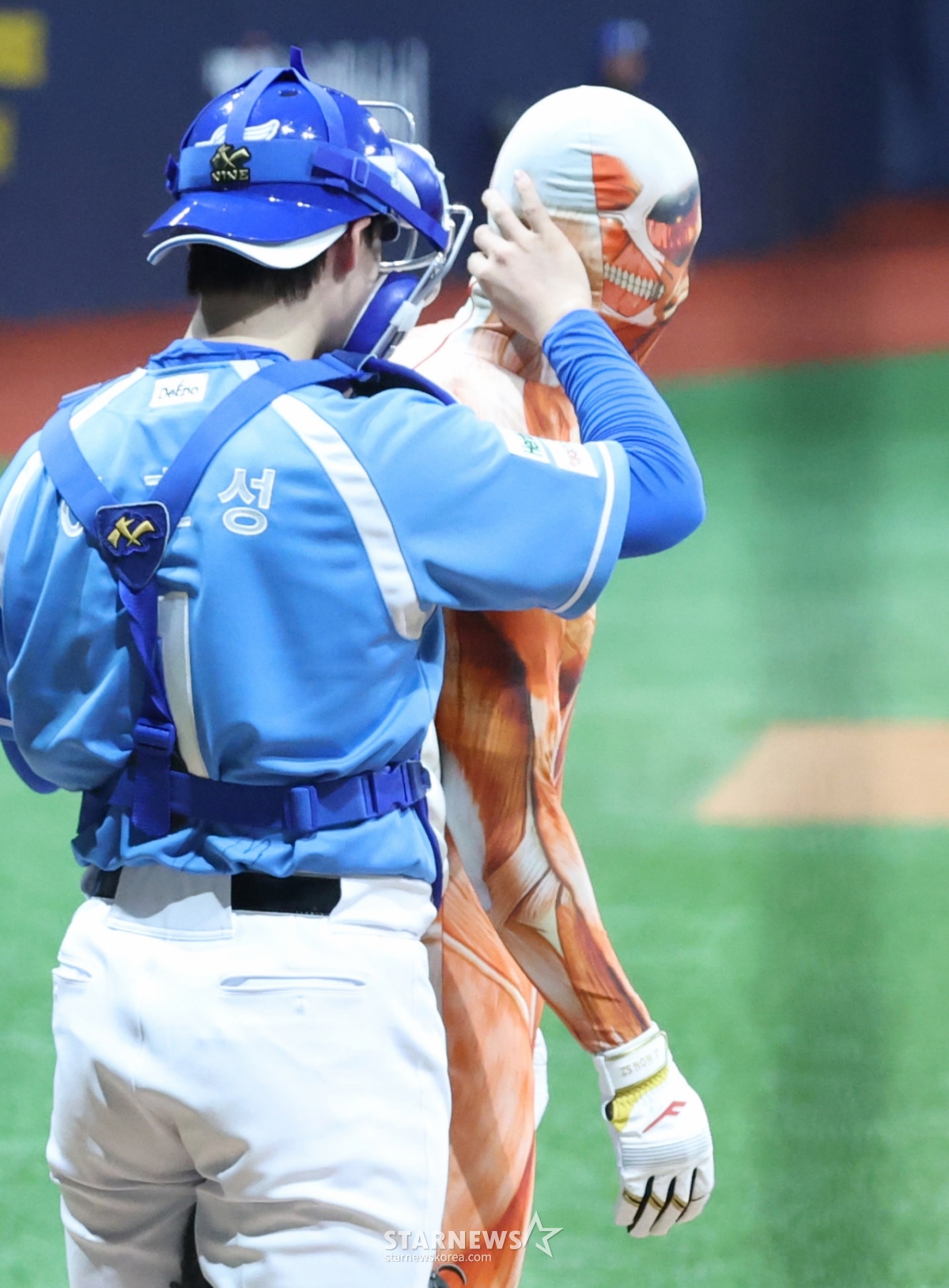 박치국, 이병헌(이상 두산 베어스), 김민수(KT 위즈)는 올해 극장가에서 흥행세가 눈에 띈 일본 애니메이션 '귀멸의 칼날' 속 캐릭터 탄지로, 네츠코, 젠이츠로 분장을 하며 팬들의 웃음을 자아냈다.