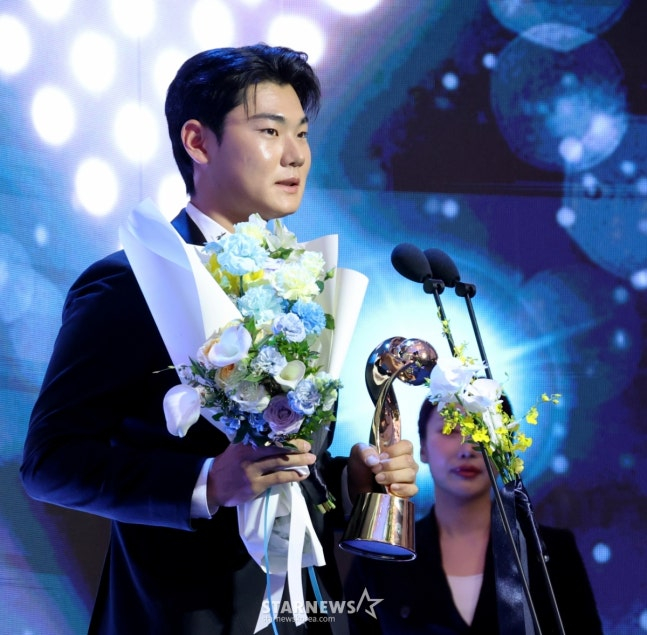 태극마크를 달고 4만 관중 앞에서 9회말 2아웃 동점 홈런이라는 기적을 썼던 김주원(23·NC 다이노스). 그런데 정작 생애 첫 KBO 시상식에서는 긴장을 지울 수 없었다.