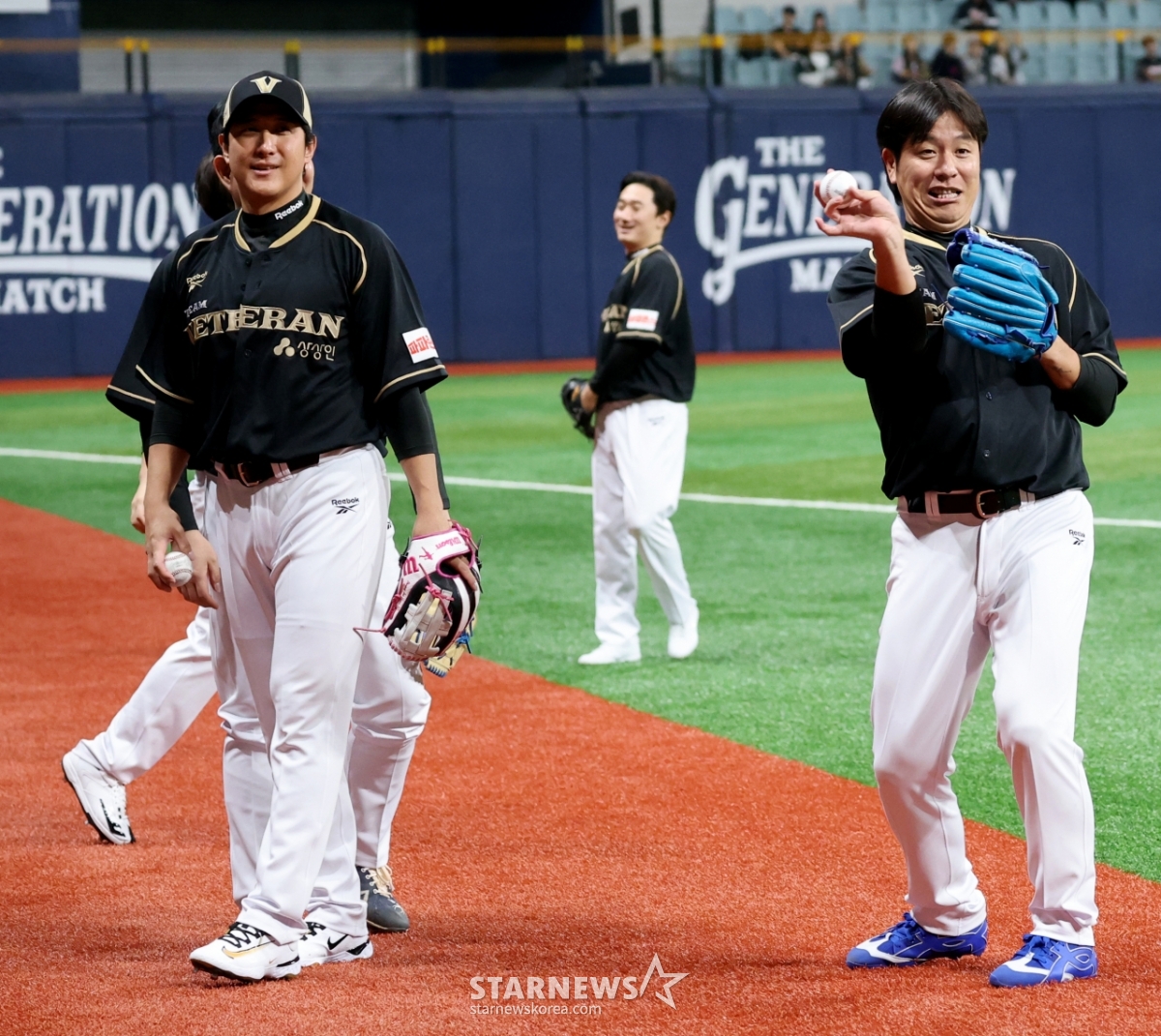 스포츠야구[포토] '익살스럽게!' 강민호발행 : 2025.11.30 ・ 16:28고척=강영조 선임기자베테랑 강민호가 30일 고척스카이돔에서 열린 ‘더 제너레이션 매치 상상인-메디카코리아’ 에서 경쟁자 황재균이 지켜보는 가운데 피칭연습을 하고 있다. 더 제너레이션 매치는 팀 베테랑(1990년대생)과 팀 라이징(2000년대생)이 세대간 대결을 펼치는 경기로 7이닝으로 진행된다. 2025.11.30.<저작권자 © 스타뉴스, 무단전재 및 재배포 금지>강민호고척스카이디카코리아황재균추천 기사강영조 선임기자기자홈좋아요 스포츠-야구의 인기 급상승 뉴스스포츠-야구의 최신 뉴스