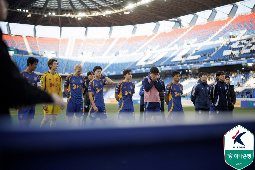 승강 플레이오프(PO) 추락 벼랑 끝에 몰렸던 울산 HD가 가까스로 잔류를 확정했다. 다만 자력 잔류가 아닌 다른 팀 결과 덕분에 어부지리로 살아남았다. 선수단도 잔류 확정에 대한 기쁨이 아닌 '잔류당한' 상황에 팬들 앞에서 고개를 숙여야 했다.