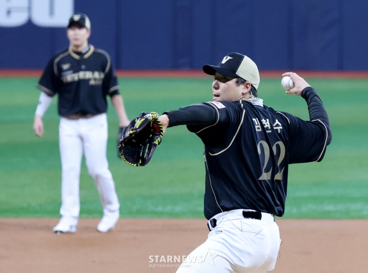 스포츠야구[포토] '베테랑팀 선발투수' 김현수발행 : 2025.11.30 ・ 17:50고척=강영조 선임기자베테랑팀 선발투수 김현수가 30일 고척스카이돔에서 열린 ‘더 제너레이션 매치 상상인-메디카코리아’ 에서 선발역투하고 있다. 더 제너레이션 매치는 팀 베테랑(1990년대생)과 팀 라이징(2000년대생)이 세대간 대결을 펼치는 경기로 7이닝으로 진행된다. 2025.11.30.<저작권자 © 스타뉴스, 무단전재 및 재배포 금지>브리핑김현수가 고척스카이돔에서 열린 더 제너레이션 매치에 선발 등판했다. 이 경기는 1990년대생 베테랑팀과 2000년대생 라이징팀 간의 세대 대결로, 총 7이닝으로 진행된다.추천 기사강영조 선임기자기자홈좋아요스포츠-야구의 인기 급상승 뉴스스포츠-야구의 최신 뉴스