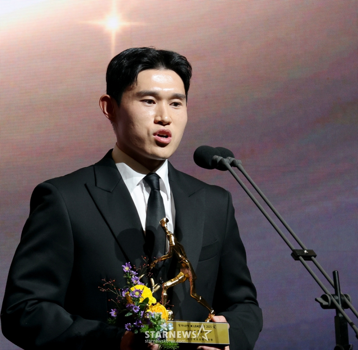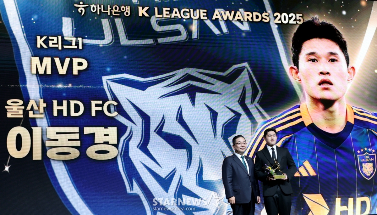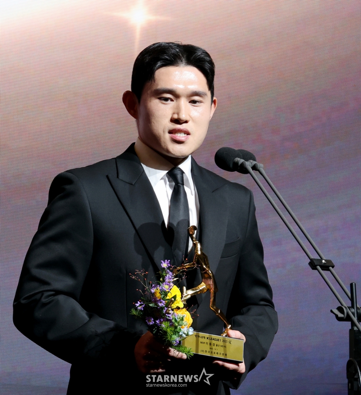 스포츠축구[포토] 'K리그 대상시상식' K리그1 MVP 이동경발행 : 2025.12.01 ・ 17:20강영조 선임기자MVP 이동경이 1일 서울 홍은동 스위스그랜드호텔에서 열린 하나은행 K리그 2025 대상시상식에서 수상후 기념촬영을 하고 있다. 한국프로축구연맹은 베스트 11에 선정된 송범근(전북), 이명재(대전), 야잔(서울), 홍정호(전북), 김문환(대전), 송민규(전북), 김진규(전북), 박진섭(전북), 강상윤(전북), 이동경(울산), 싸박(수원FC) 을 선정했다. 2025.12.01.<저작권자 © 스타뉴스, 무단전재 및 재배포 금지>이동경전북MVP서울리그대전추천 기사강영조 선임기자기자홈좋아요 스포츠-축구의 인기 급상승 뉴스스포츠-축구의 최신 뉴스