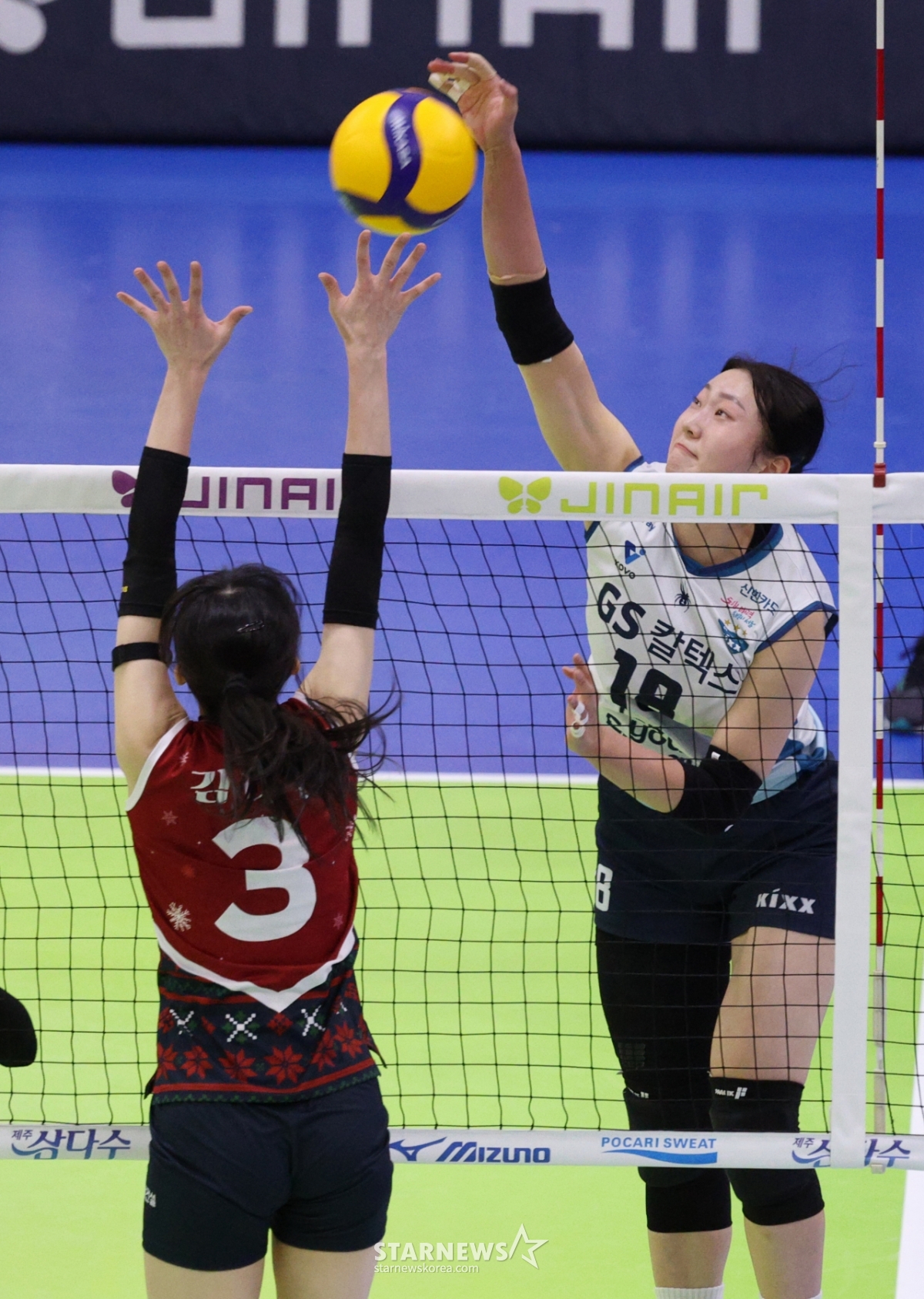 스포츠일반[포토] 권민지 '파워 어택'발행 : 2025.12.02 ・ 19:53수원=김진경 대기자2025-2026 V-리그 여자부 현대건설 대 GS칼텍스 경기가 2일 경기도 수원체육관에서 열렸다.GS칼텍스 권민지가 현대건설 김다인의 블로킹 위로 강스파이크를 날리고 있다.<저작권자 © 스타뉴스, 무단전재 및 재배포 금지>프로배구코보KOVOV리그현대건설GS칼텍스추천 기사김진경 대기자기자홈좋아요 스포츠-일반의 인기 급상승 뉴스스포츠-일반의 최신 뉴스
