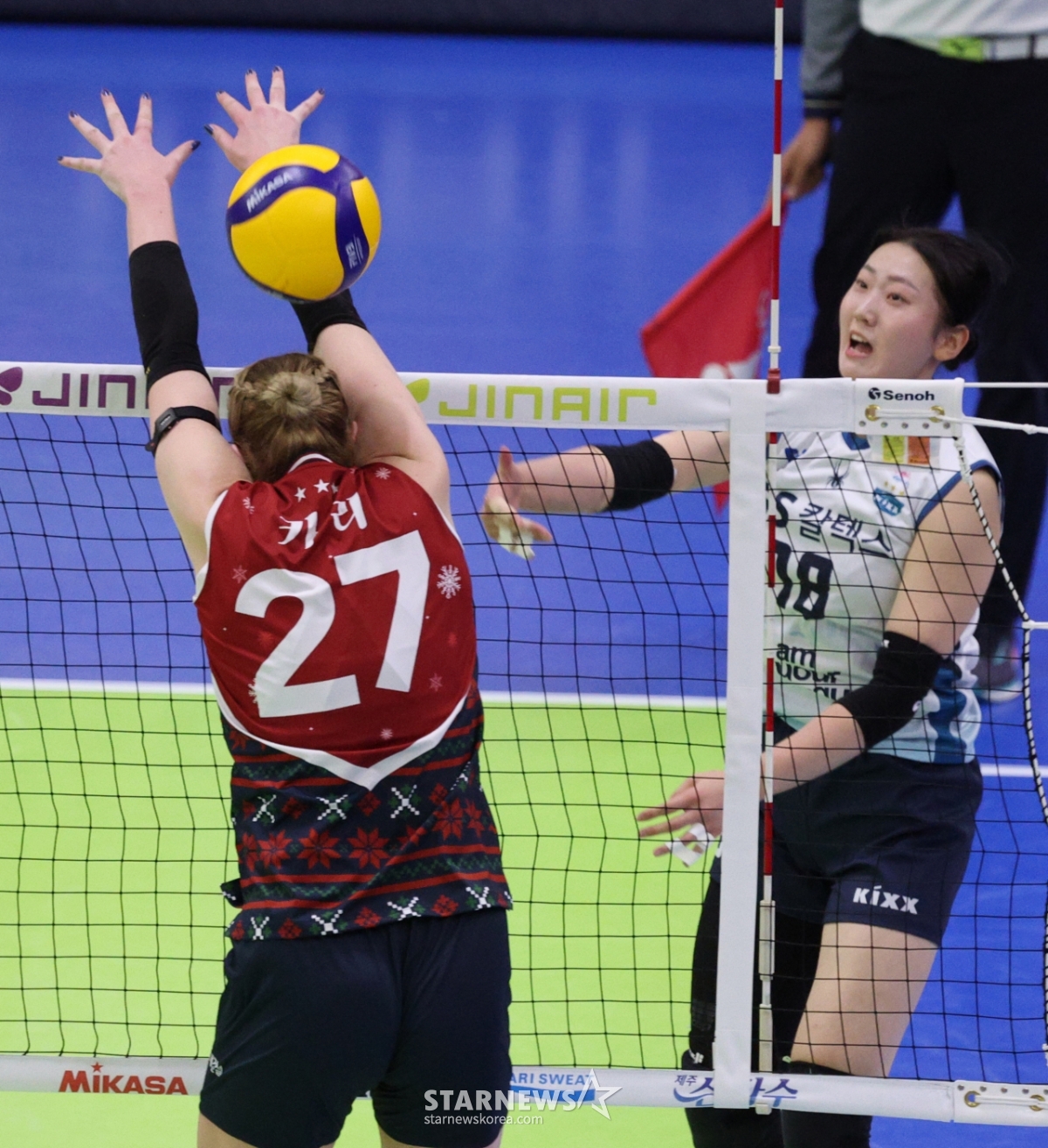 스포츠일반[포토] 권민지 '카리가 미끼를 물어부렀어'발행 : 2025.12.02 ・ 19:59수원=김진경 대기자2025-2026 V-리그 여자부 현대건설 대 GS칼텍스 경기가 2일 경기도 수원체육관에서 열렸다.GS칼텍스 권민지가 현대건설 카리의 블로킹 위로 연타를 날리고 있다.<저작권자 © 스타뉴스, 무단전재 및 재배포 금지>프로배구코보KOVOV리그현대건설GS칼텍스추천 기사김진경 대기자기자홈좋아요 스포츠-일반의 인기 급상승 뉴스스포츠-일반의 최신 뉴스