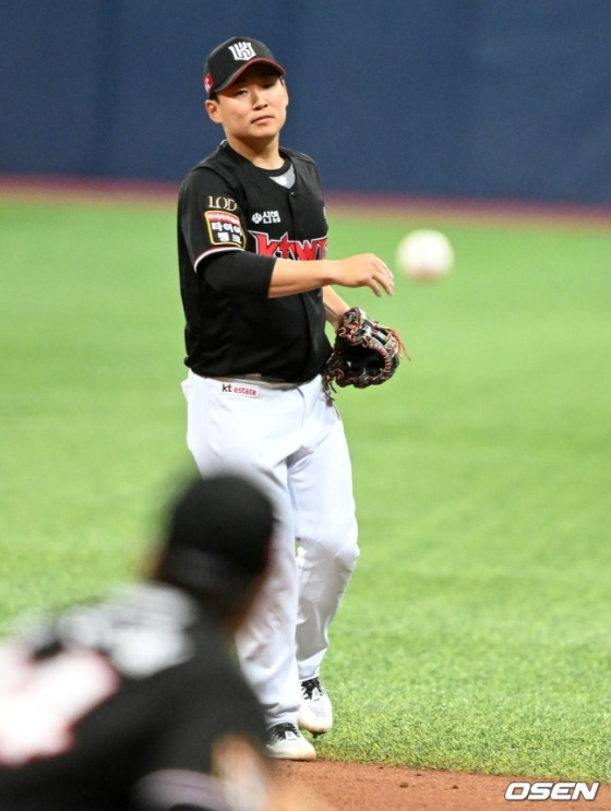 실제로 현재 KT 로스터상 확실하게 남은 한 자리는 1루뿐이다. 외야는 좌익수 김현수-중견수 최원준-우익수 안현민 주전 라인업이 확고하다. 여기에 김민혁, 배정대, 안치영 등의 백업도 탄탄하다. 내야는 3루수 허경민, 2루수 김상수-오윤석, 유격수 권동진이 먼저 나설 것으로 예상되는데, 이들을 긴장케 할 기대주들이 있다.