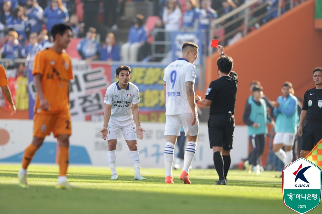 경기 시작 1분도 채 안 돼 수비지역에서 실수가 나오면서 선제 실점을 허용한 수원은 베테랑 이기제가 볼 경합 과정에서 스터드로 상대를 가격했다가 온 필드 리뷰까지 거쳐 퇴장당해 수적 열세까지 몰렸다. 1·2차전 합산 스코어에서 0-2로 밀린 수원 입장에서 이기제의 퇴장은 그야말로 치명타였다.