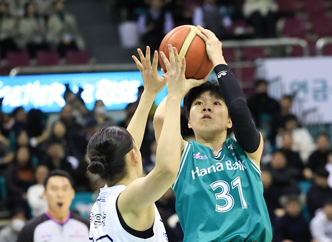 하나은행은 8일 부천실내체육관에서 열린 신한은행과 'BNK 금융 2025~2026시즌 WKBL(여자프로농구)' 2라운드 경기에서 69-58로 이겼다. 신한은행의 끈질긴 추격을 잘 뿌리쳤다.