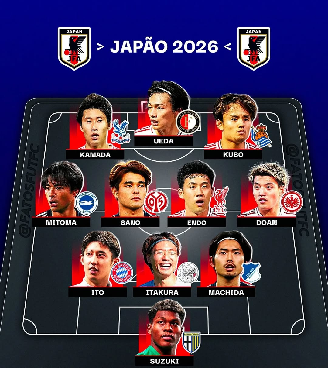 예컨대 일본의 경우 미토마 가오루(브라이턴 앤 호브 알비온)와 도안 리츠(프랑크푸르트)가 윙백으로 포진하고, 이타쿠라 고(아약스)를 중심으로 이토 히로키(바이에른 뮌헨), 마치다 고키(호펜하임)가 스리백을 형성할 것으로 예상됐다.