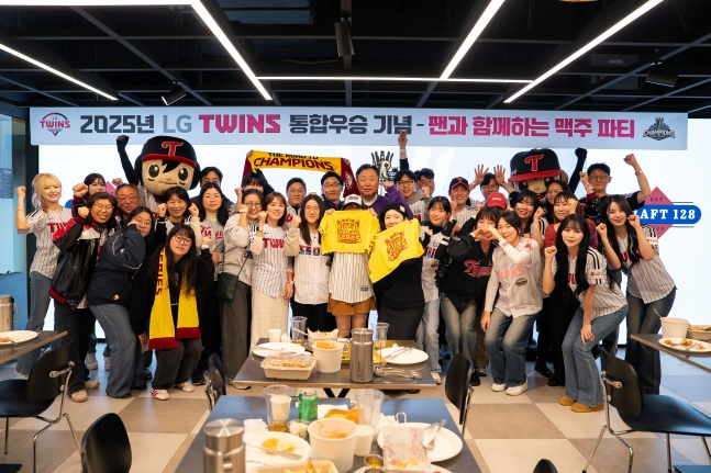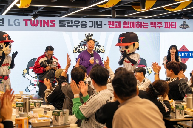 LG 구단은 10일 서울특별시 여의도 LG트윈타워 서관 지하 1층 'DRAFT 128'에서 열린 '통합우승 기념 팬 맥주파티'를 진행했다.