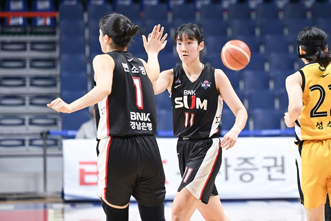 5할 승률이 깨질 위기에 놓였던 부산 BNK 썸이 기사회생했다. 상대 4연패를 탈출하고 공동 2위가 됐다.