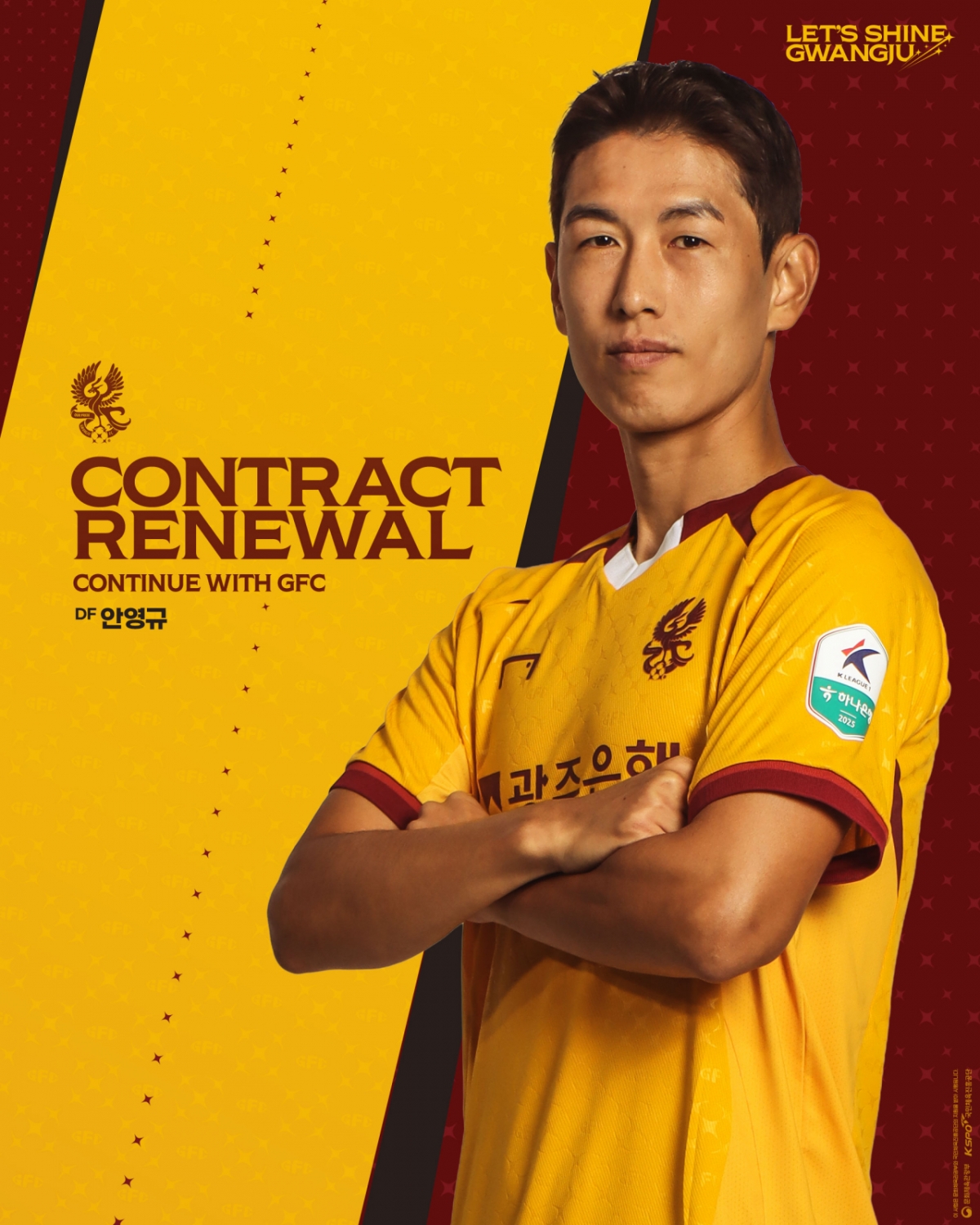 2027년까지 광주에서 뛰게 된 안영규는 "다시 한번 새로운 목표를 향해 나아갈 기회를 얻게 돼 매우 기쁘다"며 "그동안 많은 응원을 보내주신 팬 여러분께 경기력과 헌신으로 보답하겠다"고 소감을 밝혔다.