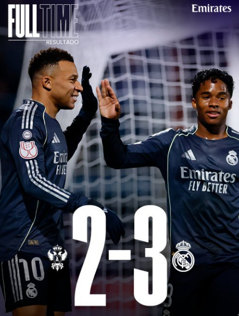 레알은 18일(한국시간) 스페인 타라베라 델라 레이나의 엘프라도 경기장에서 열린 타라베라(3부 리그 팀) 와 코파 델 레이(스페인 국왕컵) 32강전에서 3-2로 승리했다.
