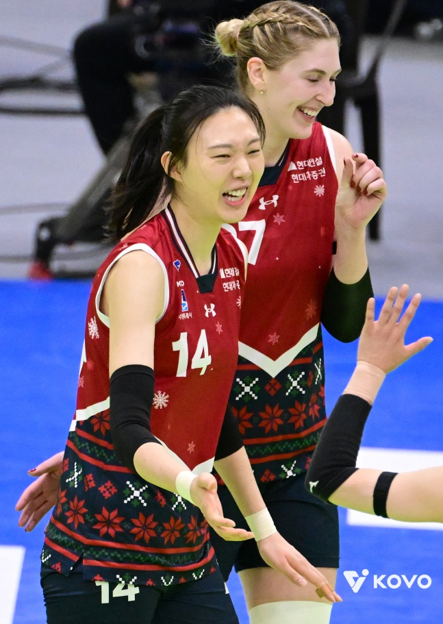 이로써 5세트 없이 5연승을 달린 2위 현대건설은 10승 6패(승점 32)로 1위 한국도로공사(13승 3패·승점 35)를 3점 차로 바짝 쫓았다.