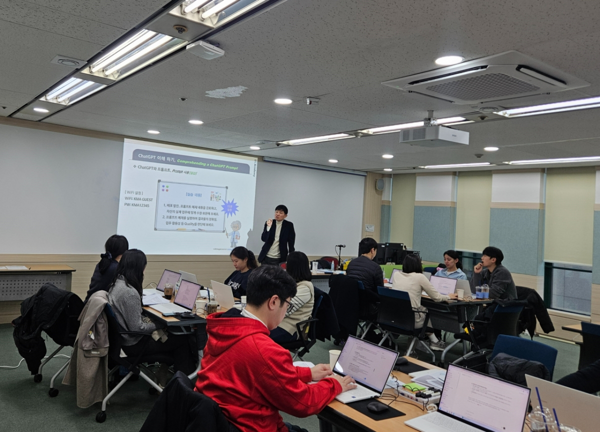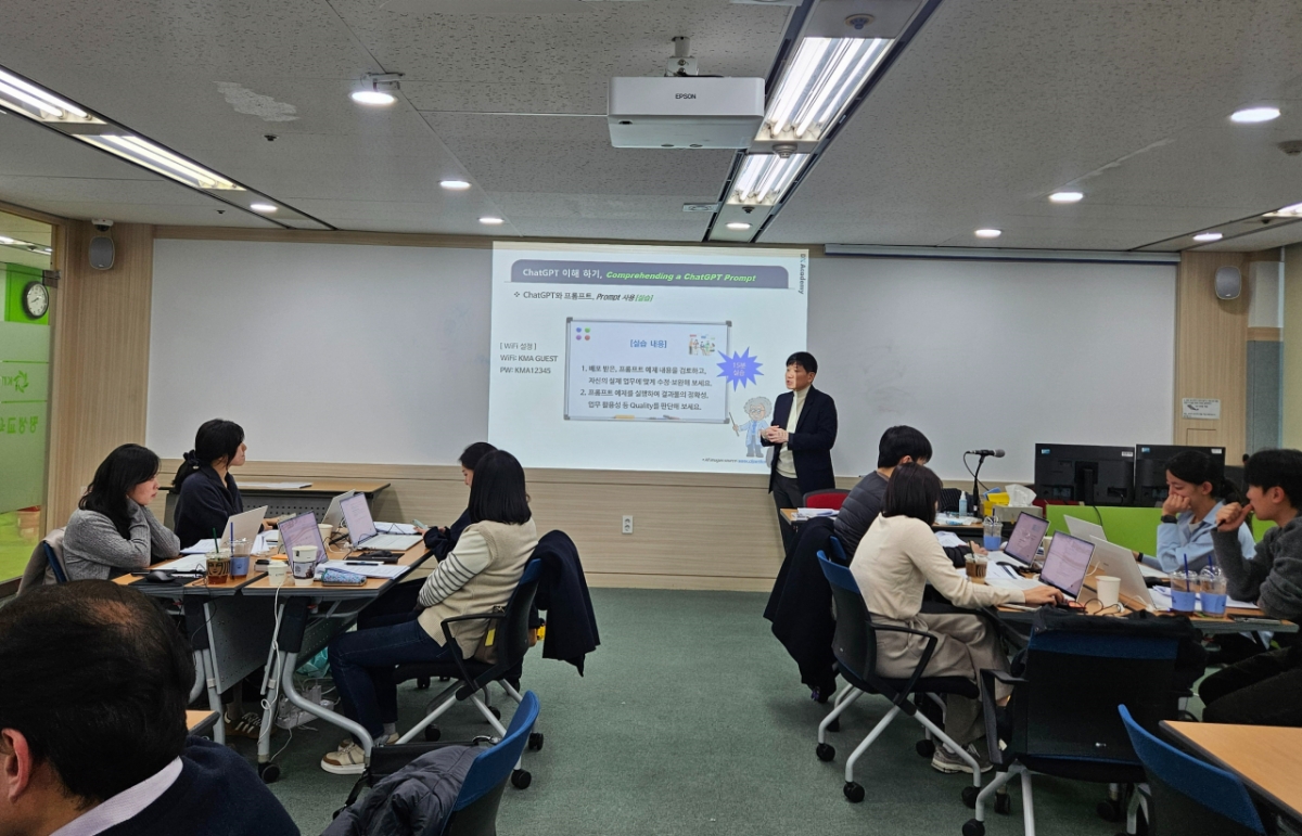 교육 과정에서는 인공지능 시대의 경영 환경 변화와 생성형 인공지능의 핵심 개념을 이해하는 이론 교육이 먼저 이뤄졌다.