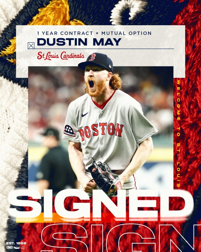 세인트루이스 카디널스가 데려온 더스틴 메이(28)의 계약 규모에 반응이 뜨겁다.